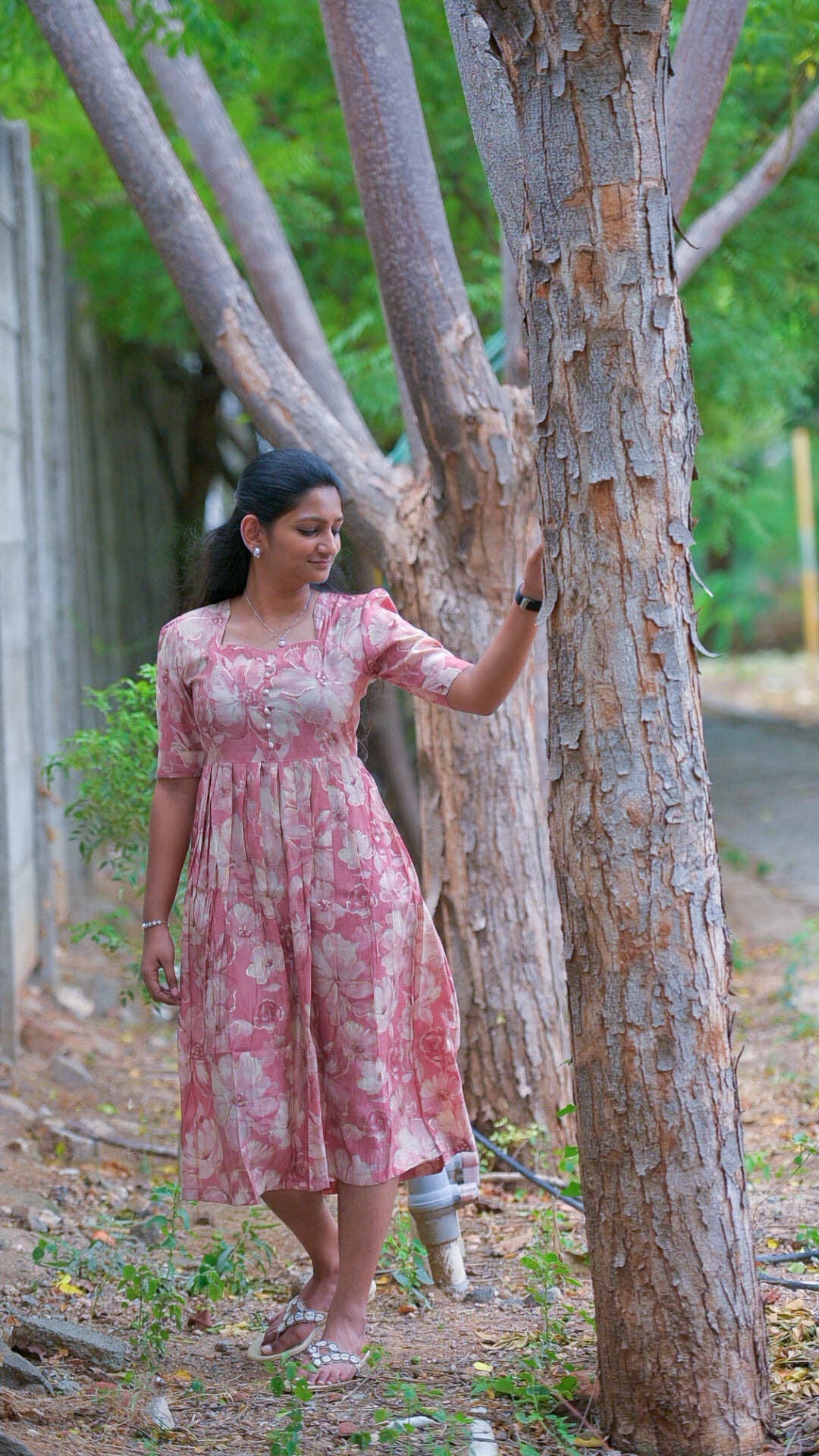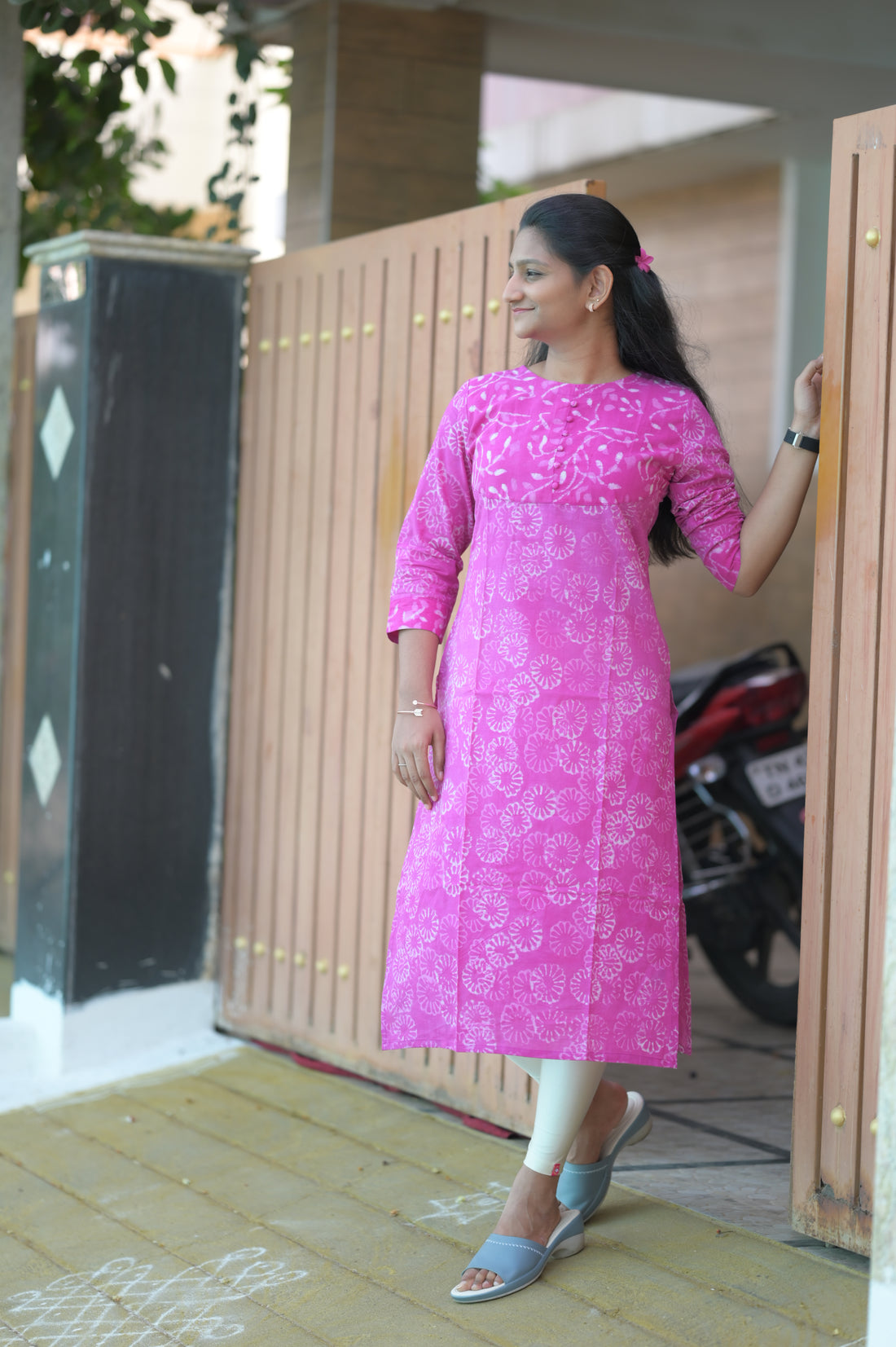 Gulabi Glow Handblock Kurti 1926 Add a pop of vibrant elegance to your everyday wardrobe...