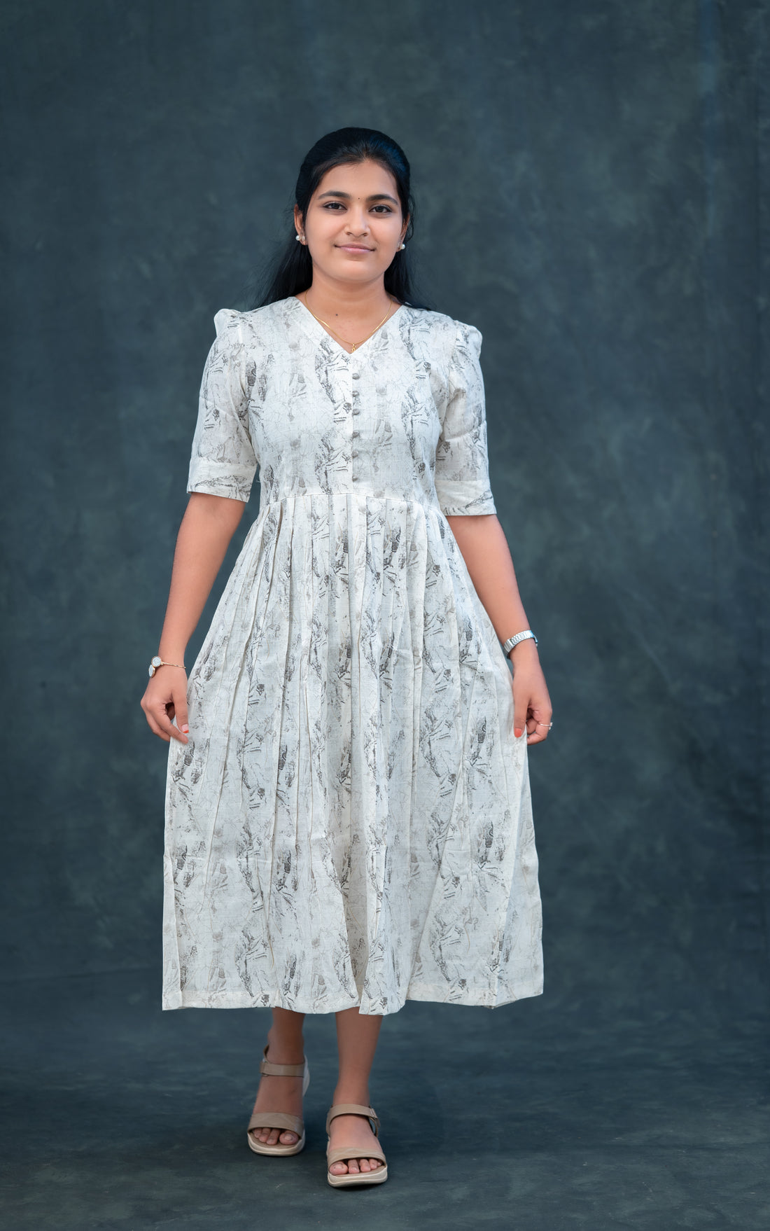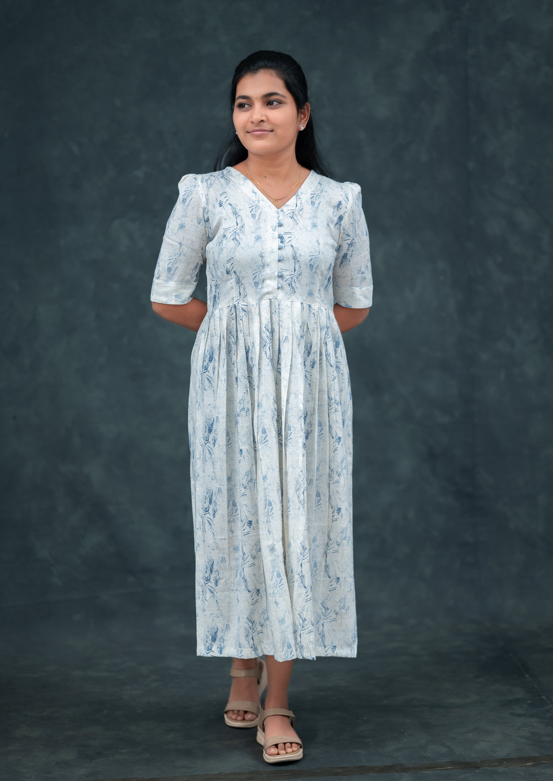 🌊Ocean Mist Flared Dress Description: Style Type: Flared Empire Kurti (Anarkali-style fusion) Color Palette: White...