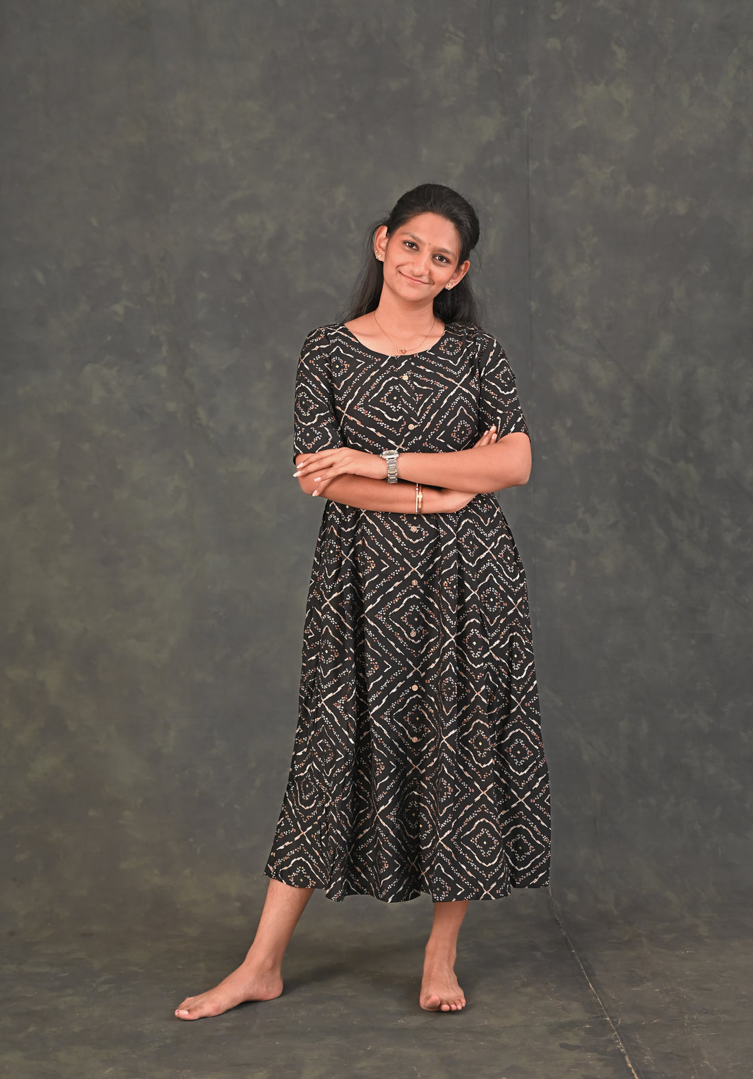 👚 Black Golden Aura Abstract Midi 🧵 Fabric Name : Burberry Soft Cotton Blend 📏...