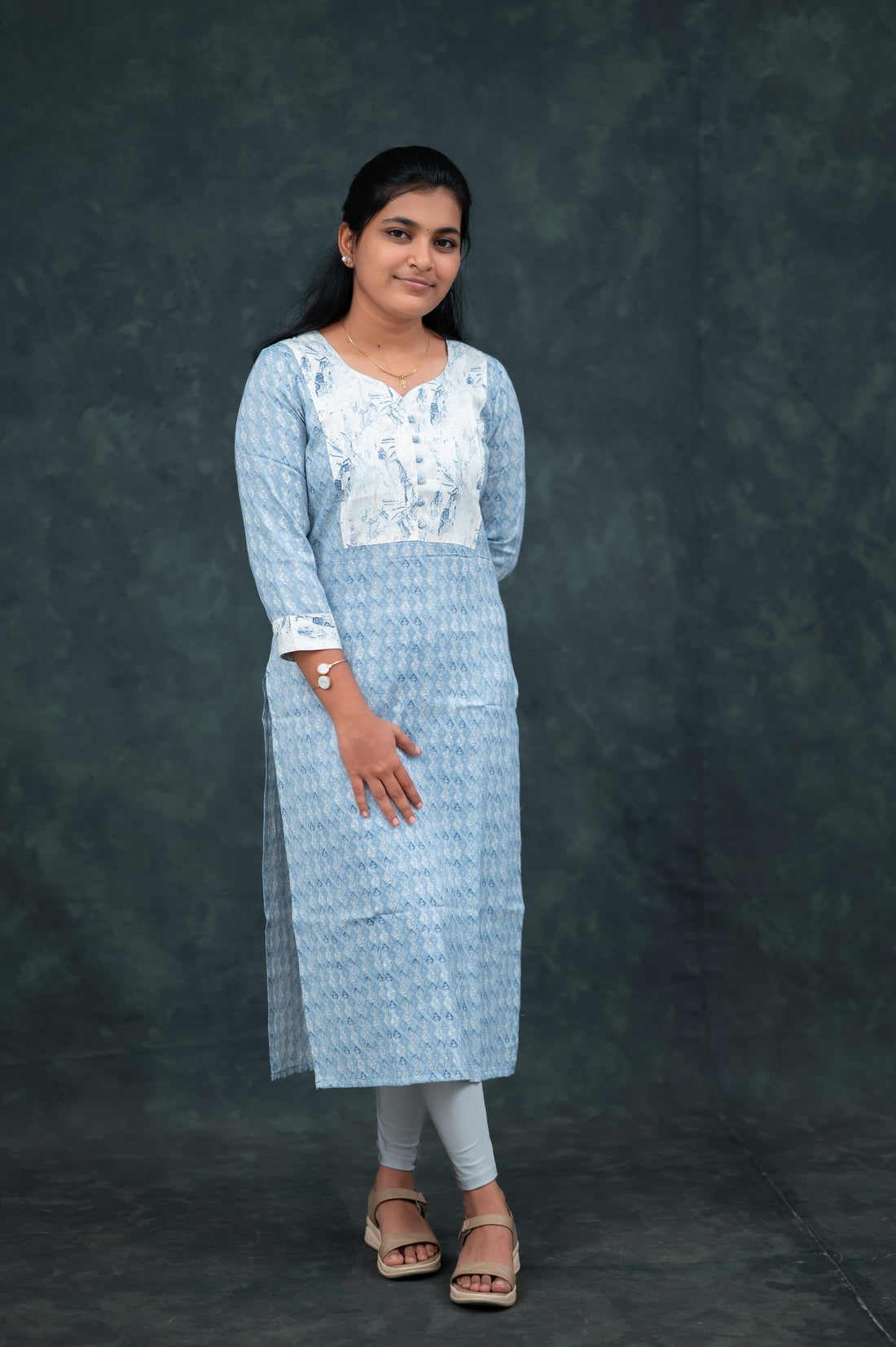 🩵🪺 Teal Blue Blossom Straight Kurti