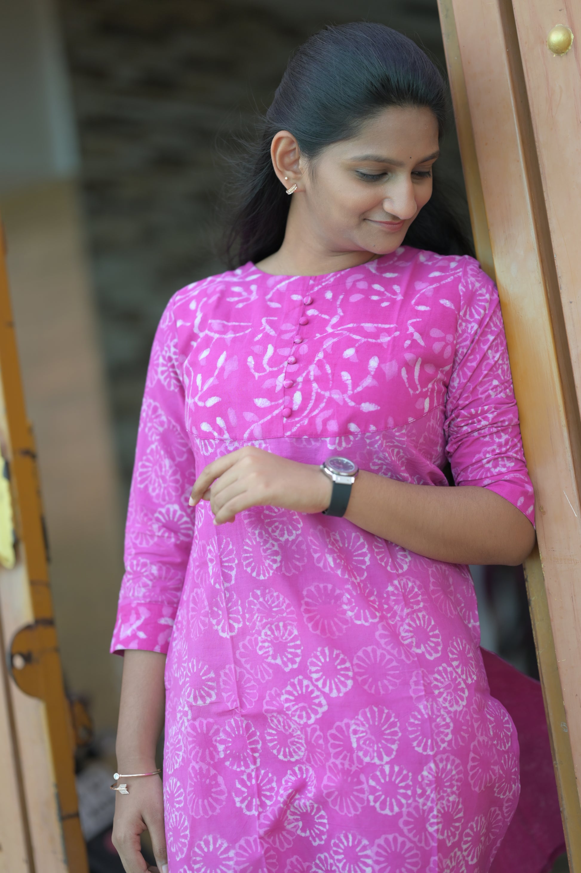 Gulabi Glow Handblock Kurti 1926