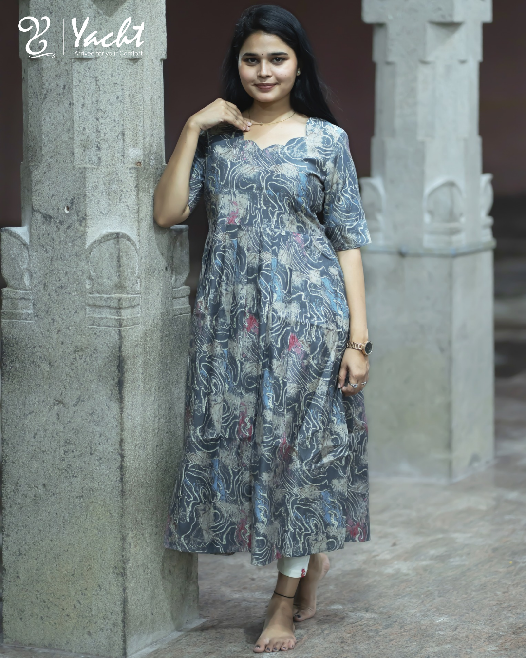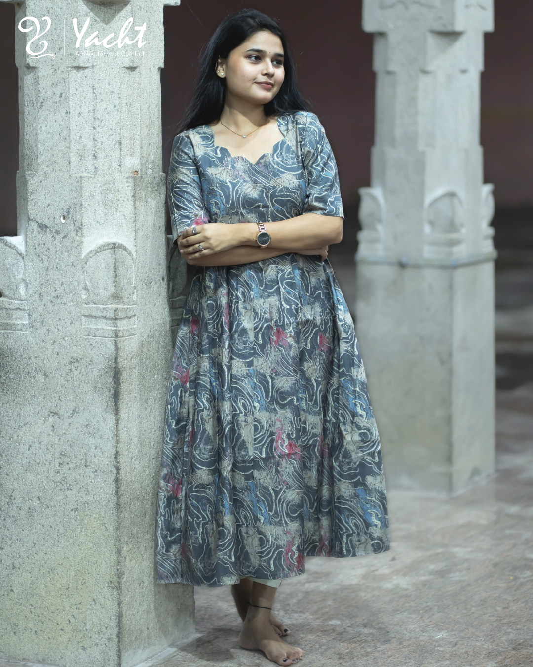 Empire Cut: High-waisted gathers that create a flattering flared look.