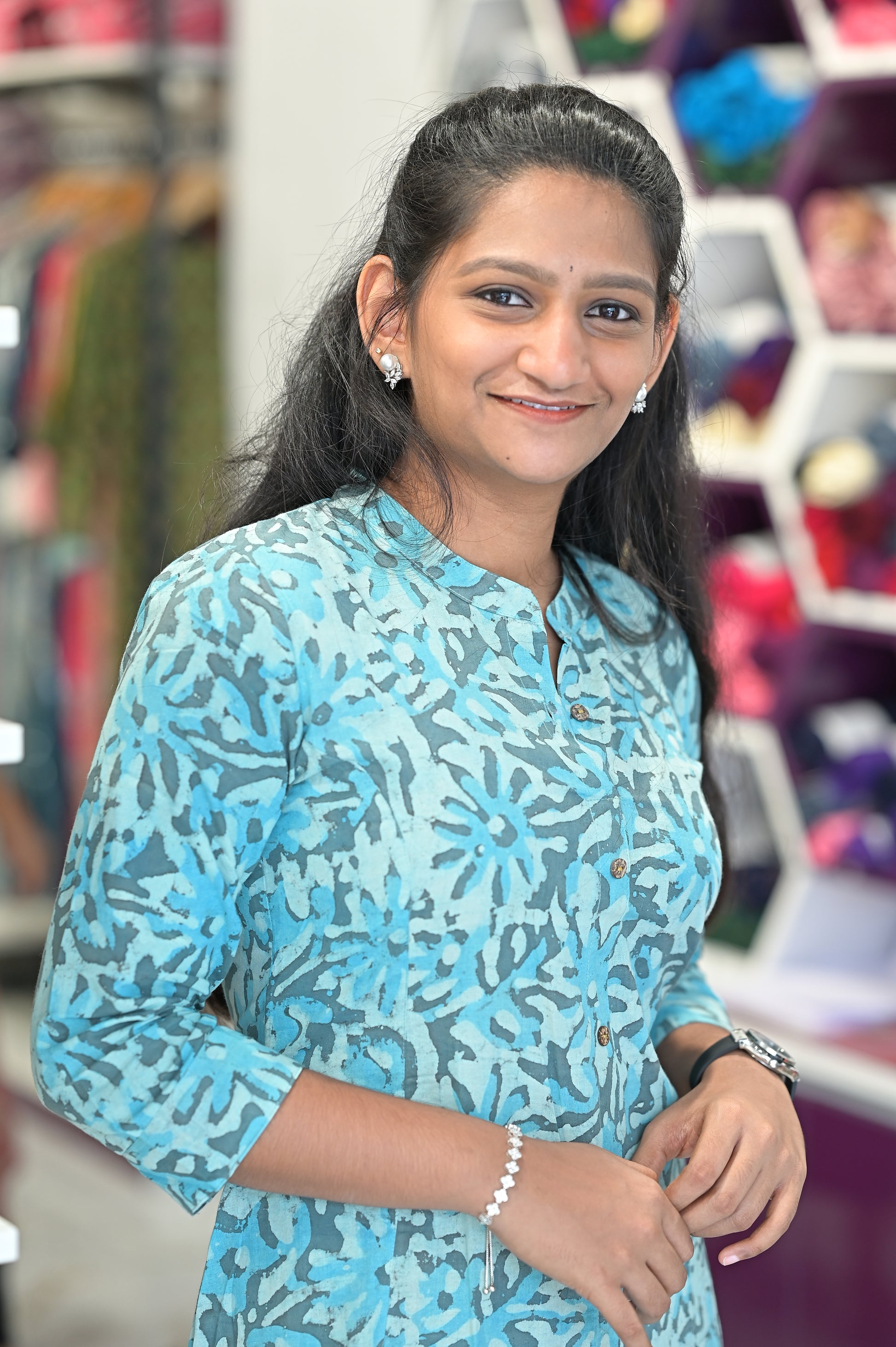 Flow through your day in style with the Aqua Bloom Front-Slit Kurti, a refreshing blend of traditional motifs and modern silhouette. Adorned with delicate floral block prints in cool tones of turquoise and grey, this kurti brings an easy elegance to everyday wear.
