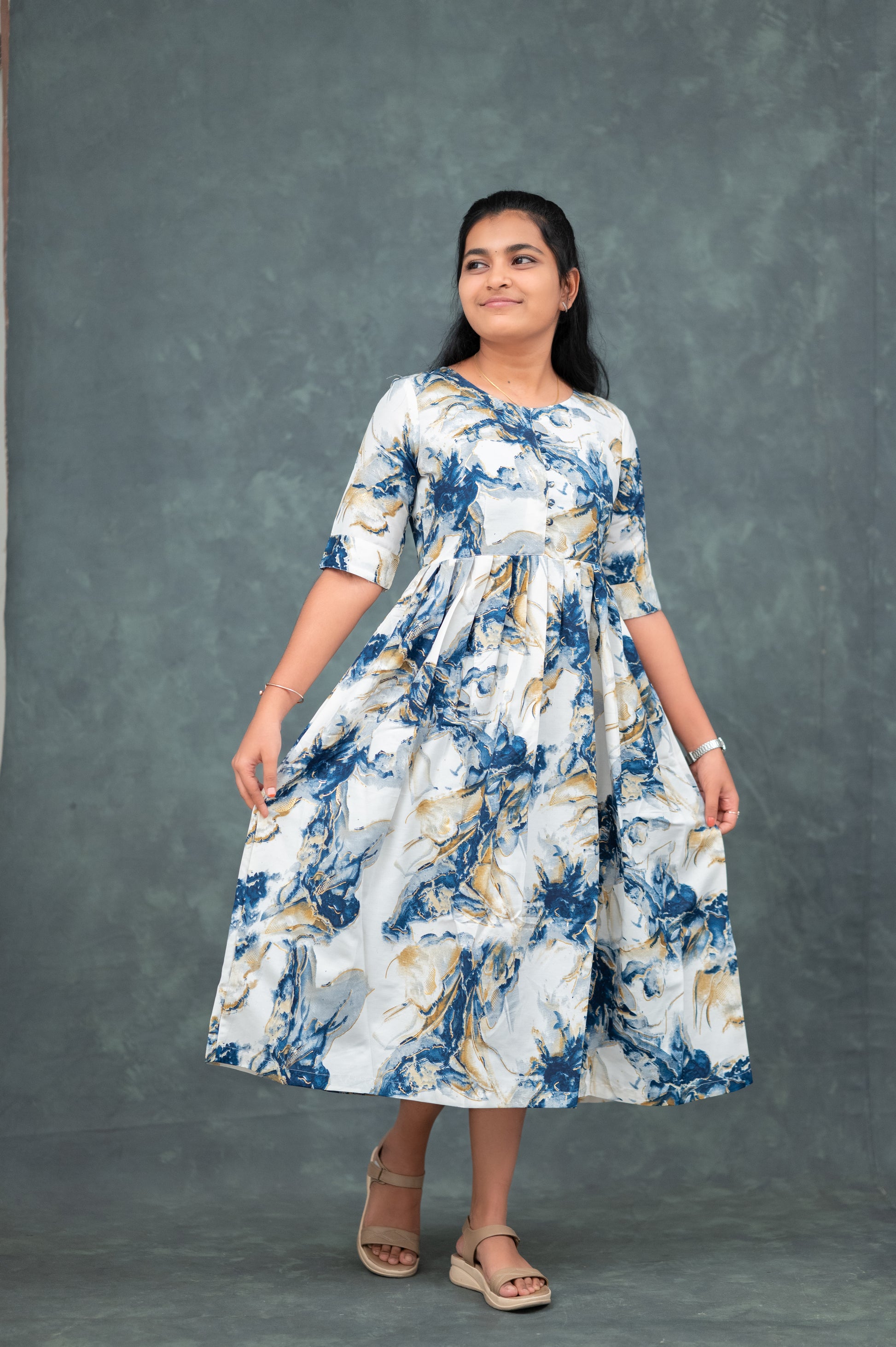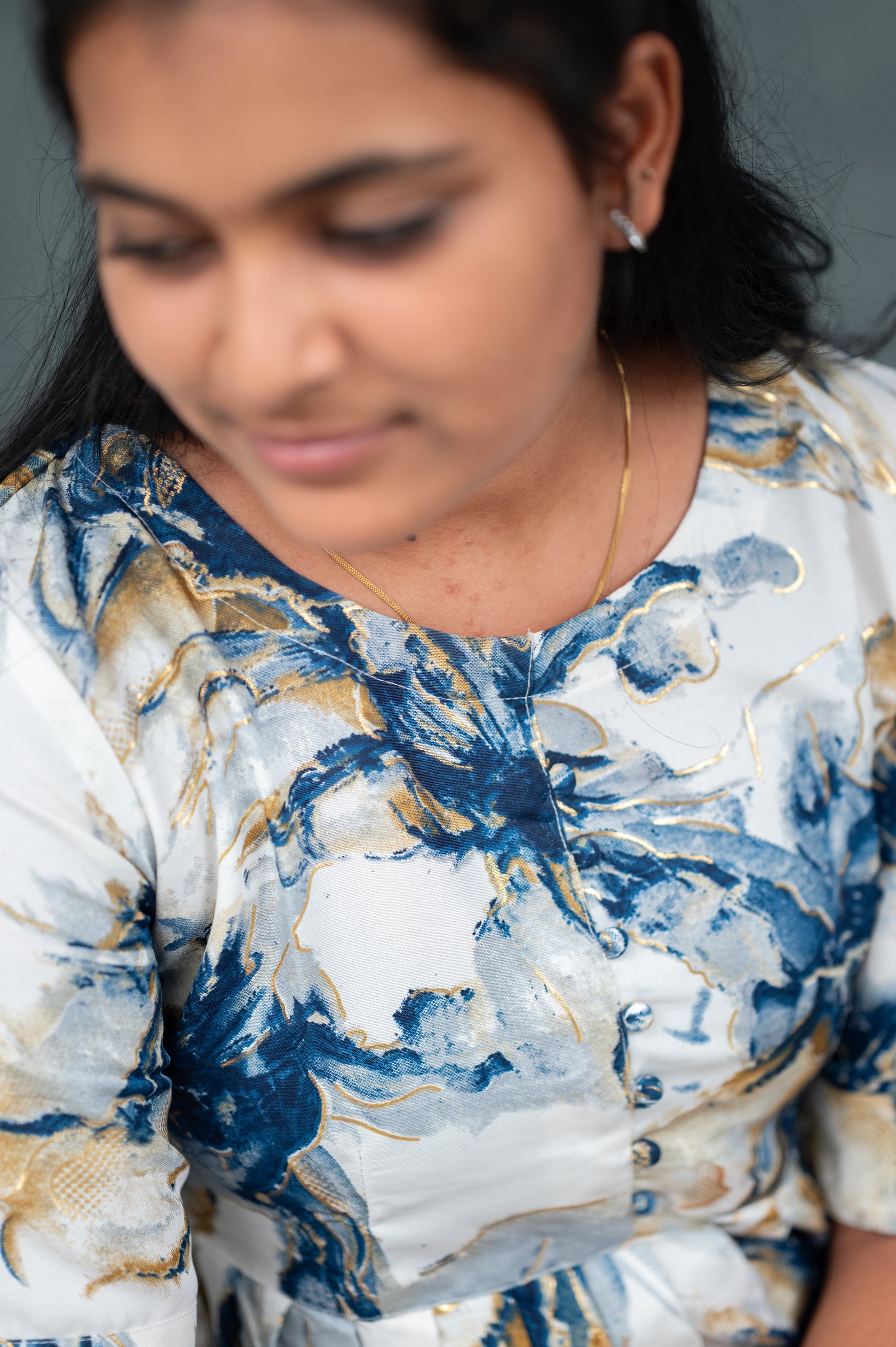 Fabric: Light, breathable cotton or cotton blend, ideal for everyday elegance