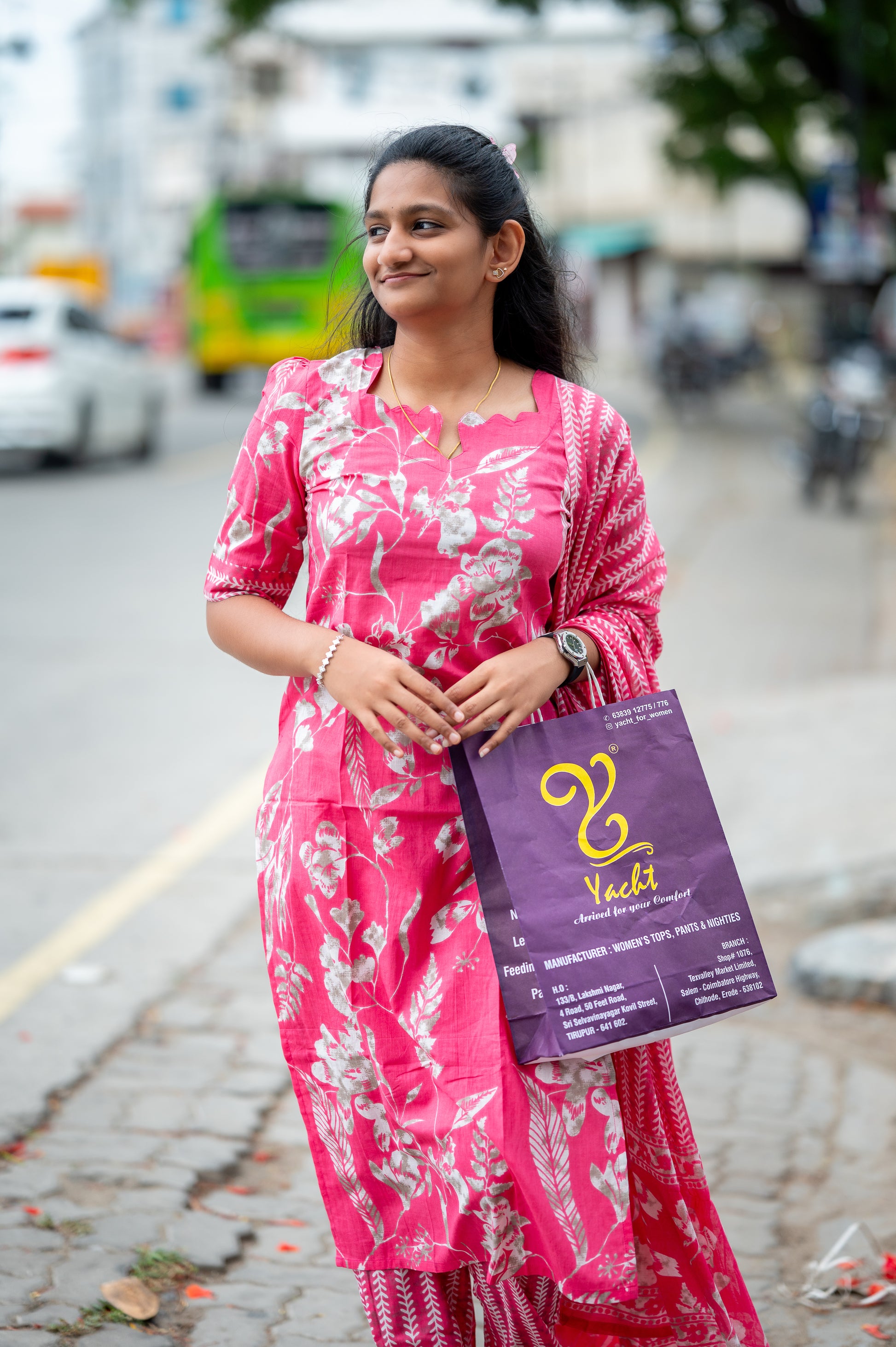 Likely cotton or a cotton-blend, ideal for daily wear or summer use, providing breathability and comfort.