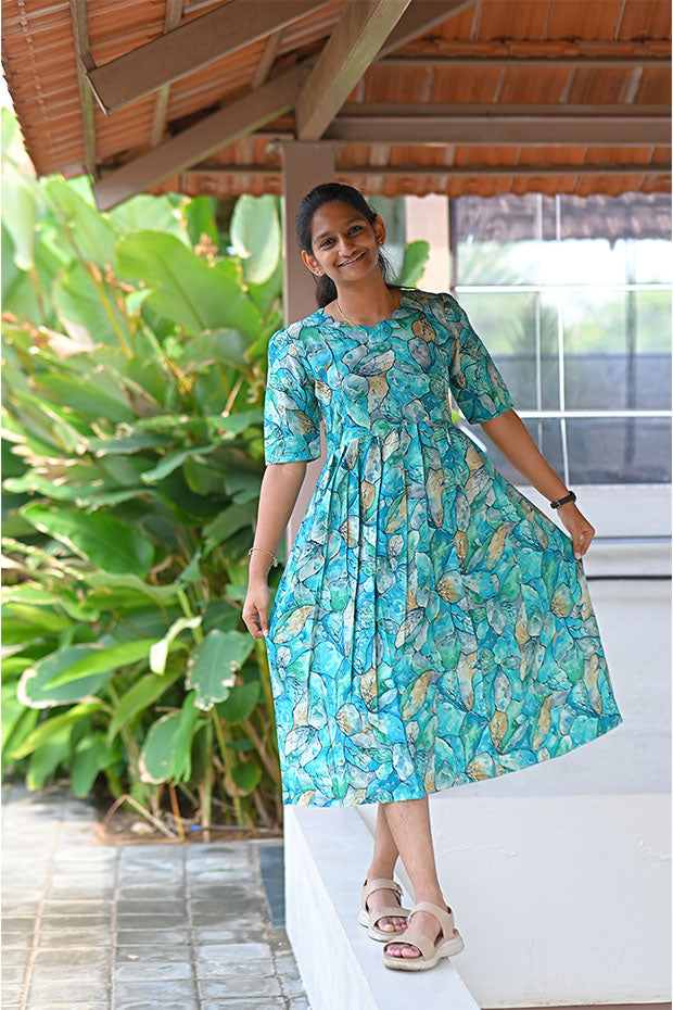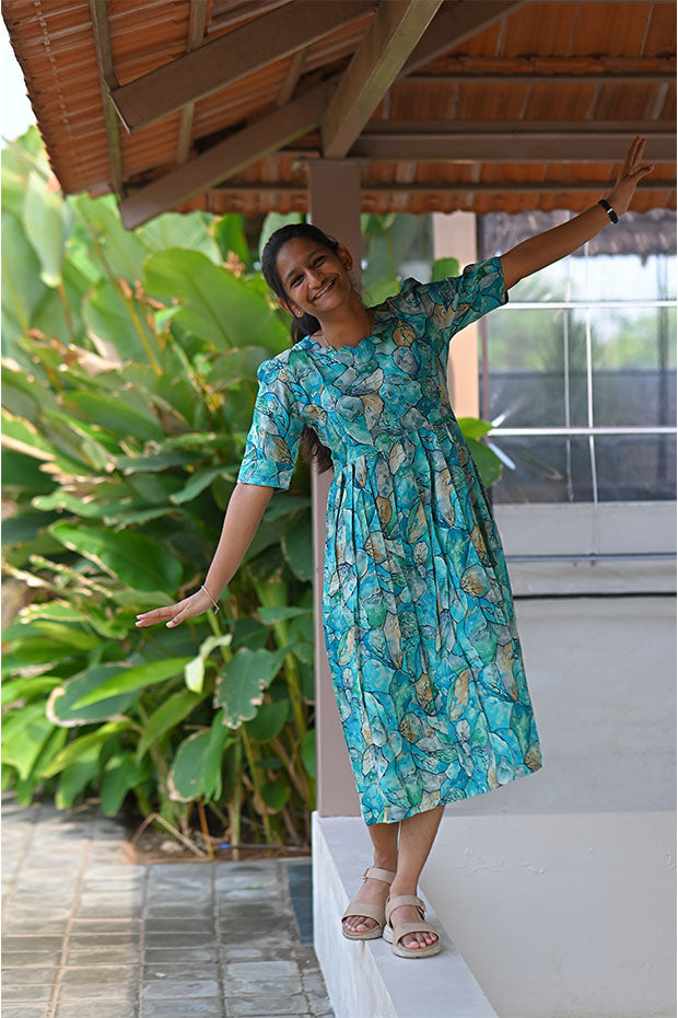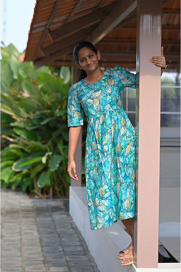 As calming as a coastal morning, the ‘Bluebell Breeze’ kurti soothes the senses with its delicate color and flow