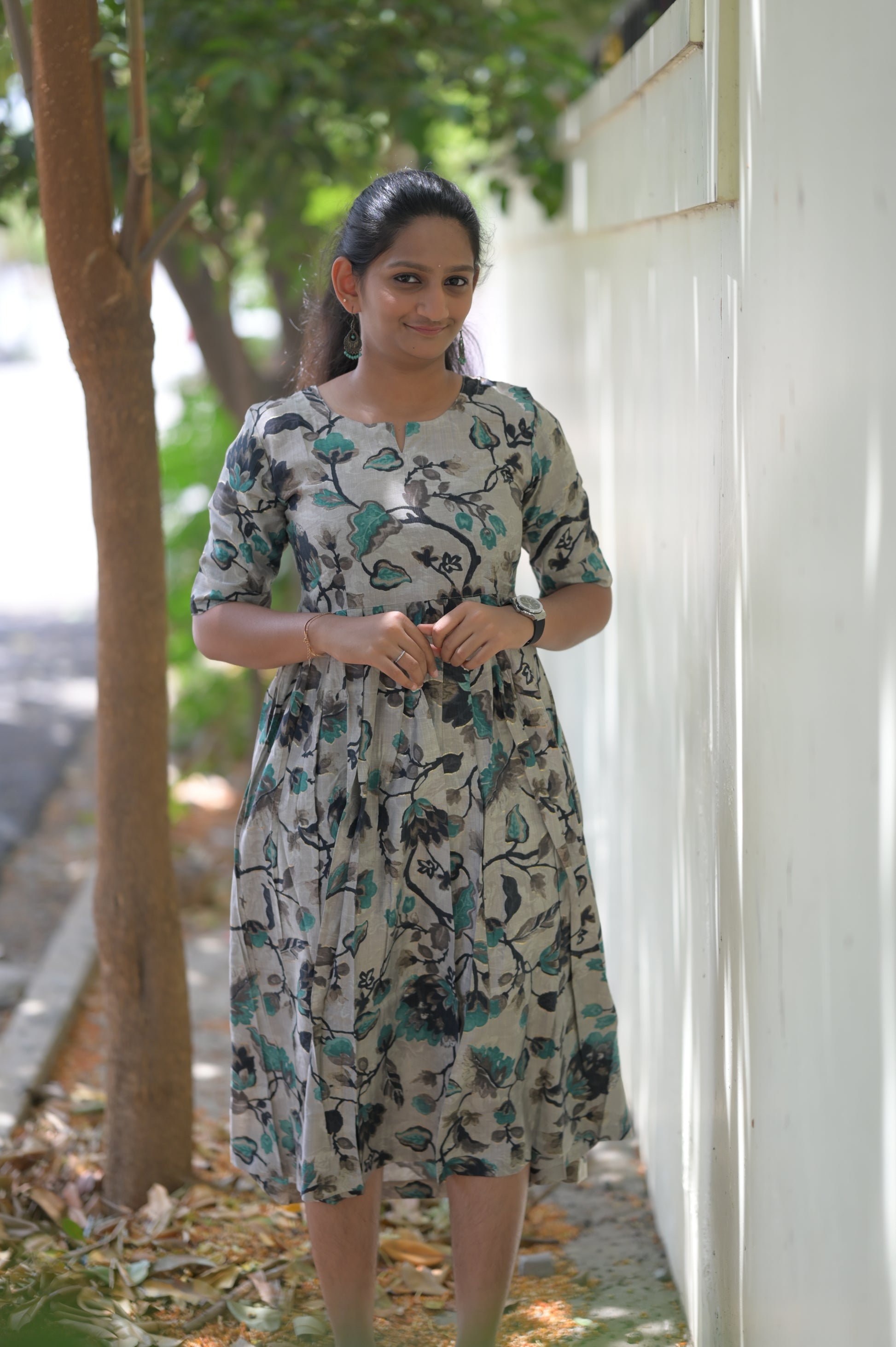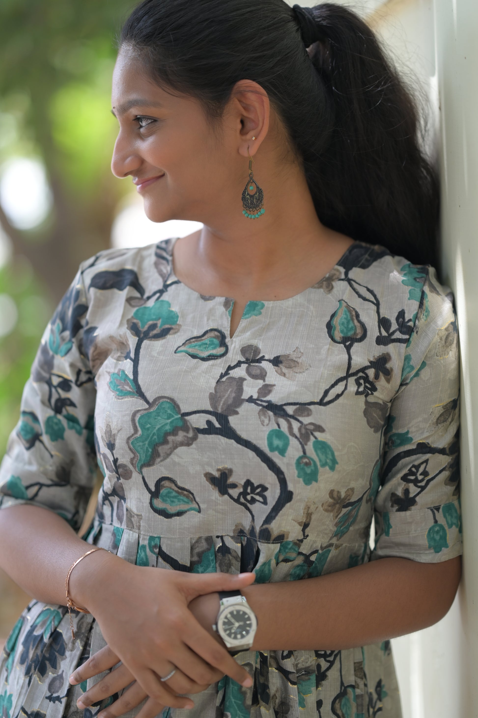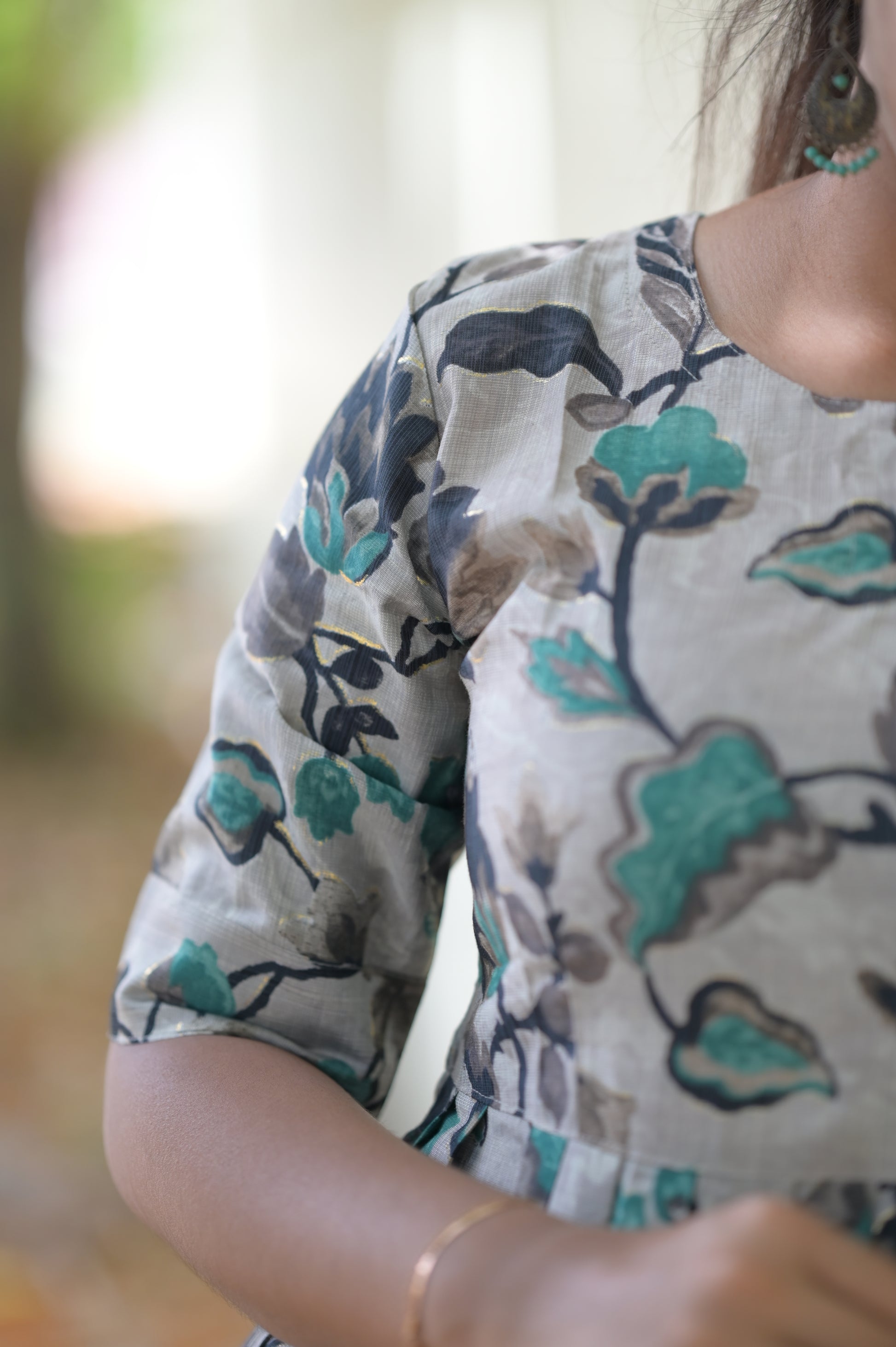 Step into effortless elegance with the Garden Bloom Fit & Flare Kurti. Featuring a soft scoop neckline with a subtle sweetheart curve, this kurti is designed with elbow-length sleeves and a flattering fit-and-flare silhouette that enhances your natural shape.