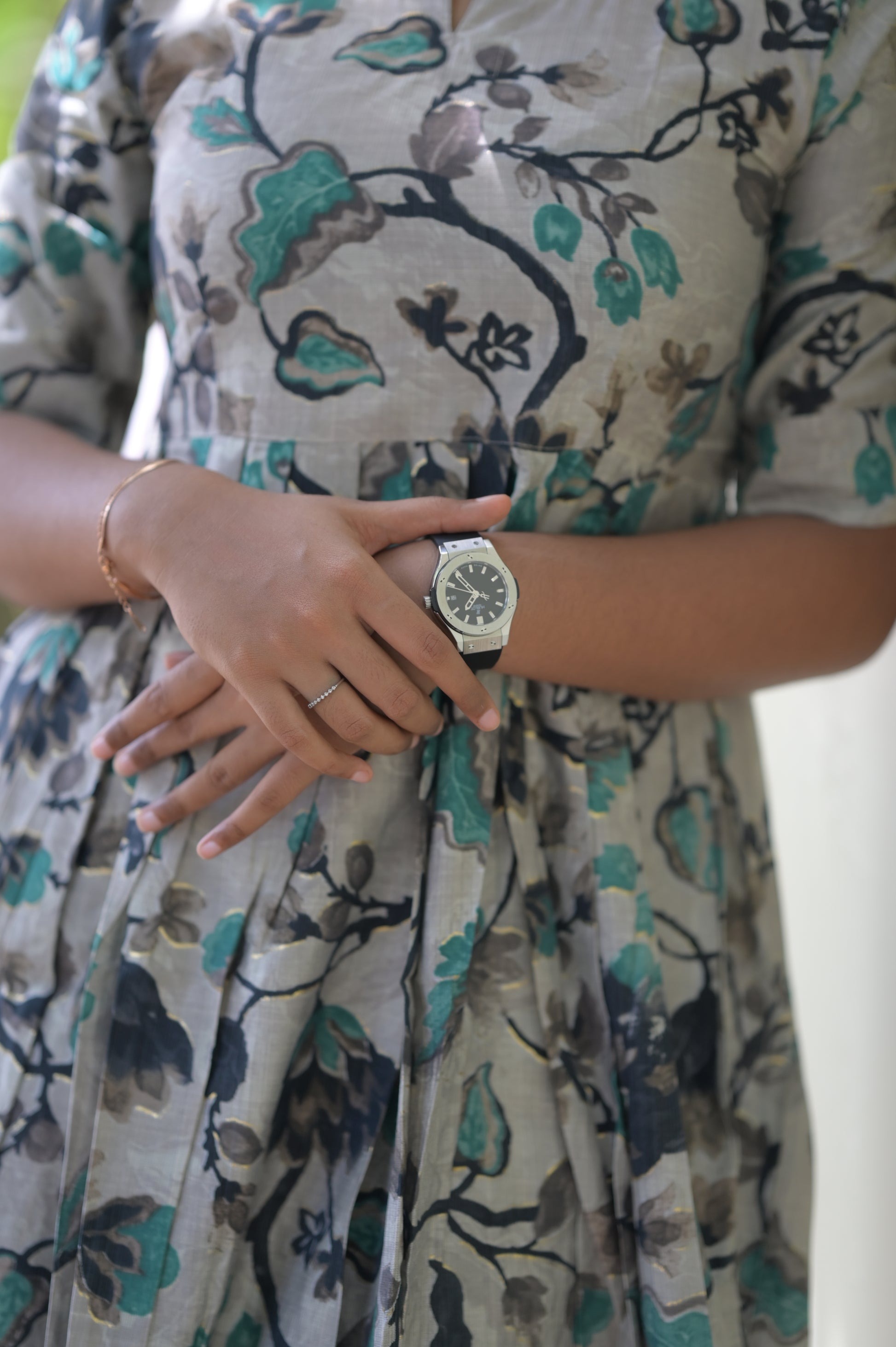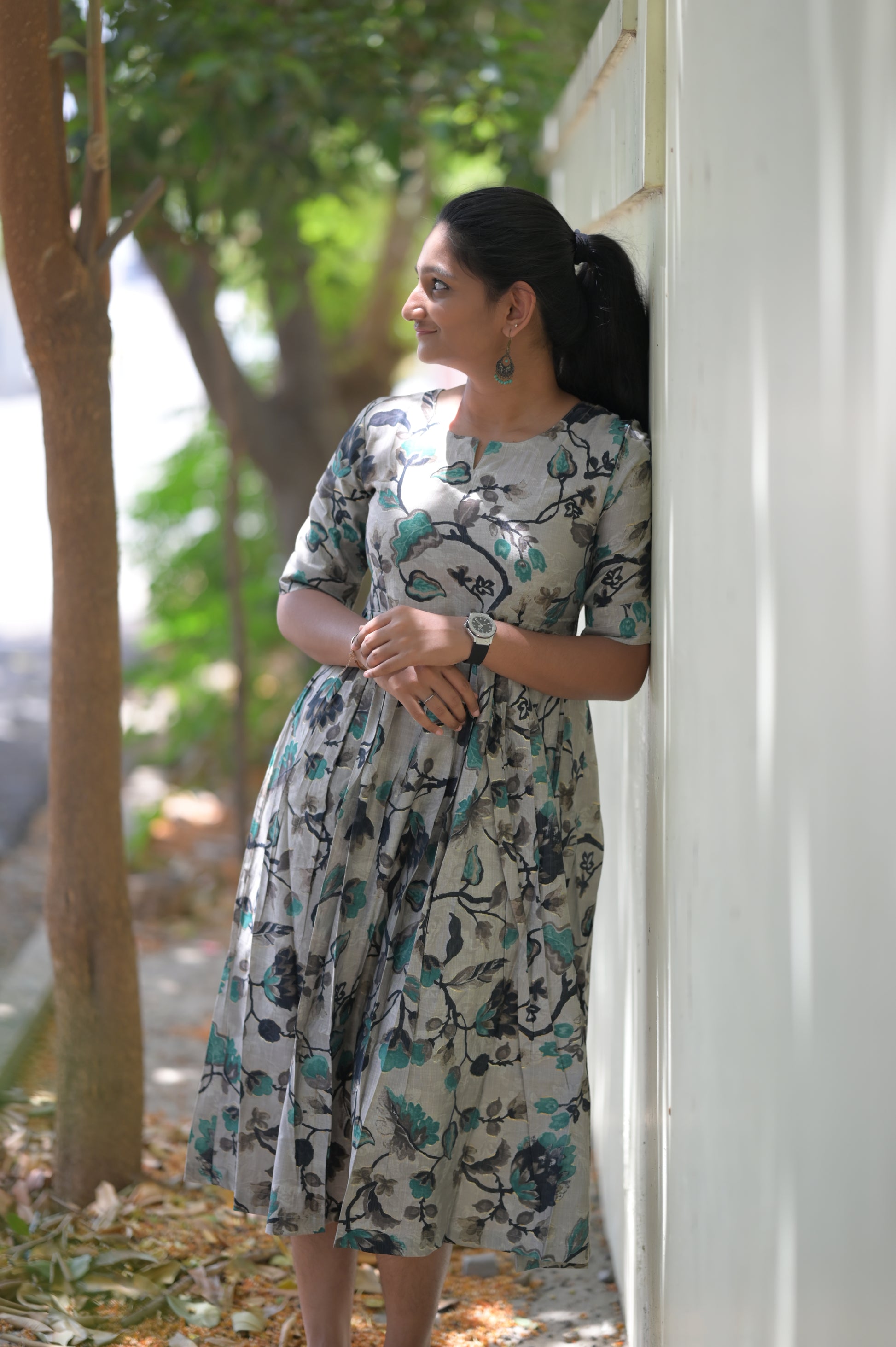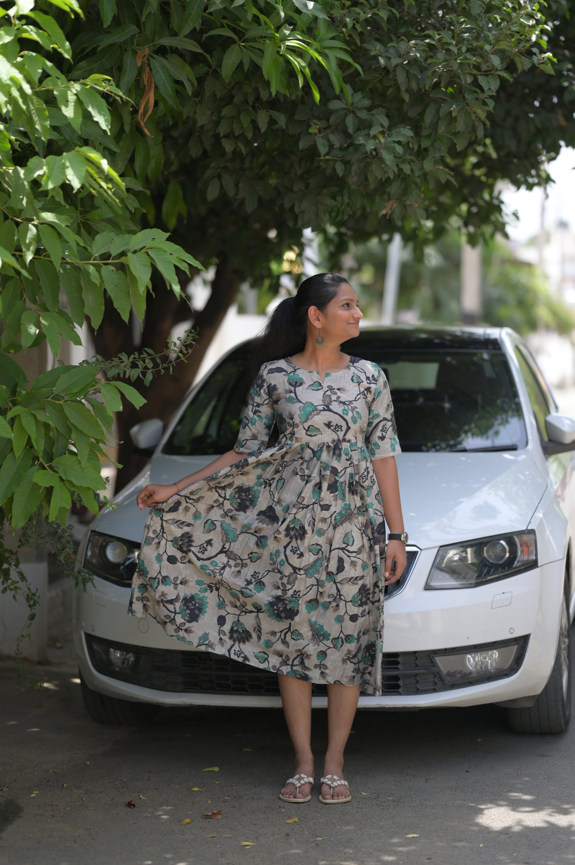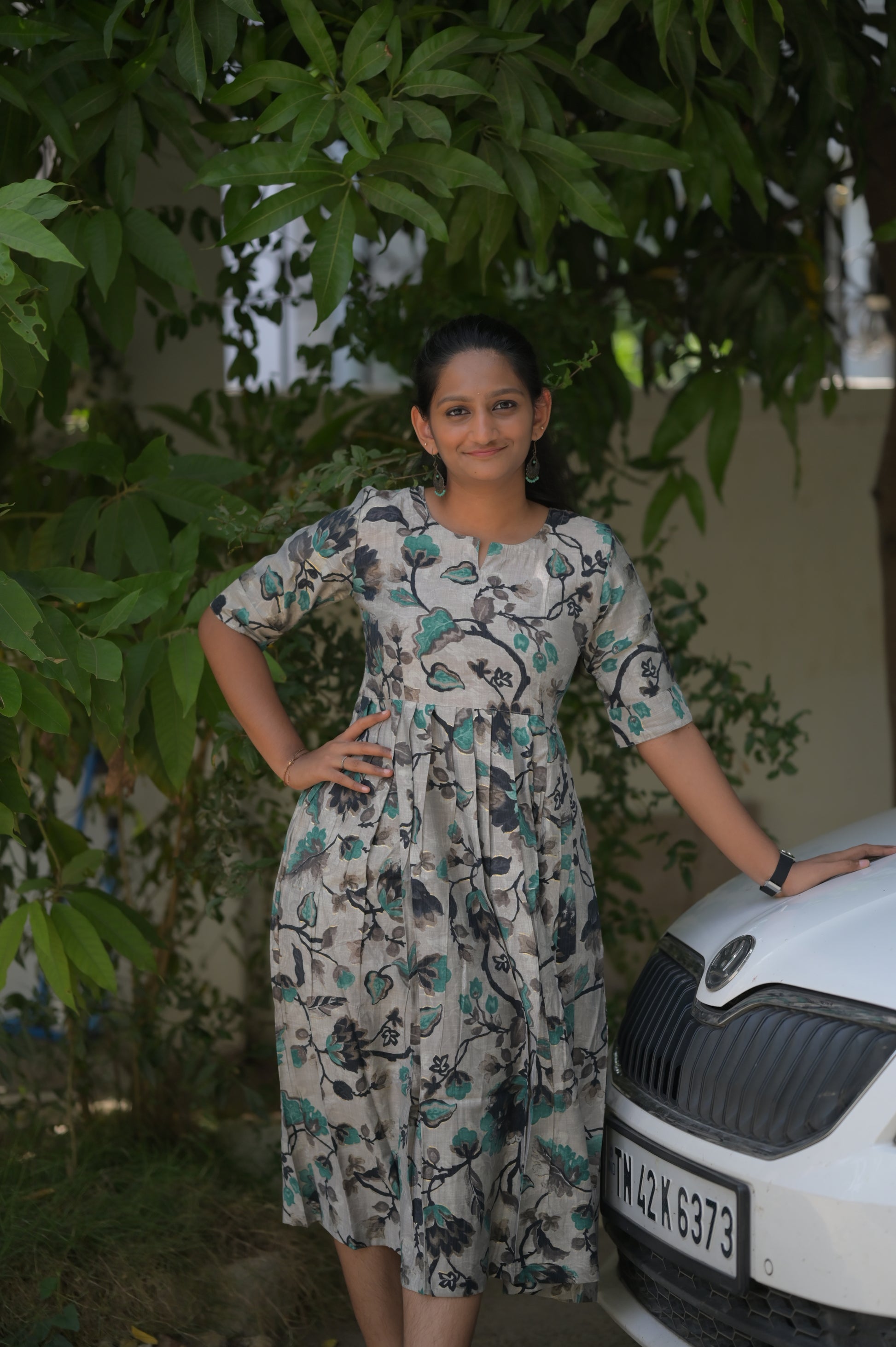 Step into effortless elegance with the Garden Bloom Fit & Flare Kurti. Featuring a soft scoop neckline with a subtle sweetheart curve, this kurti is designed with elbow-length sleeves and a flattering fit-and-flare silhouette that enhances your natural shape.