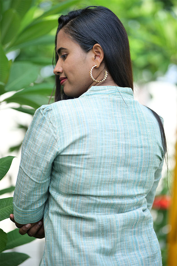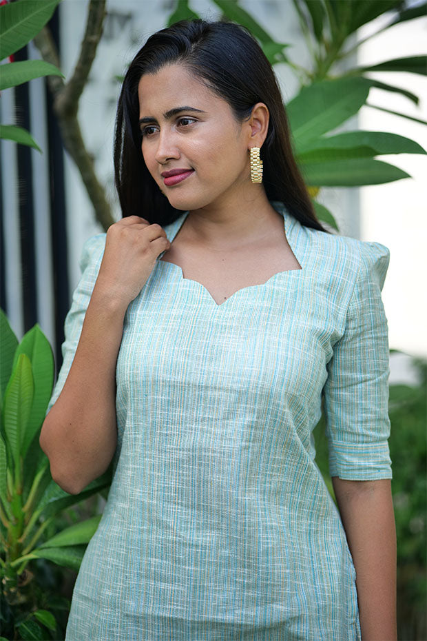 Lush and refreshing, the ‘Green Glimmer’ kurti sparkles with botanical beauty and natural poise.