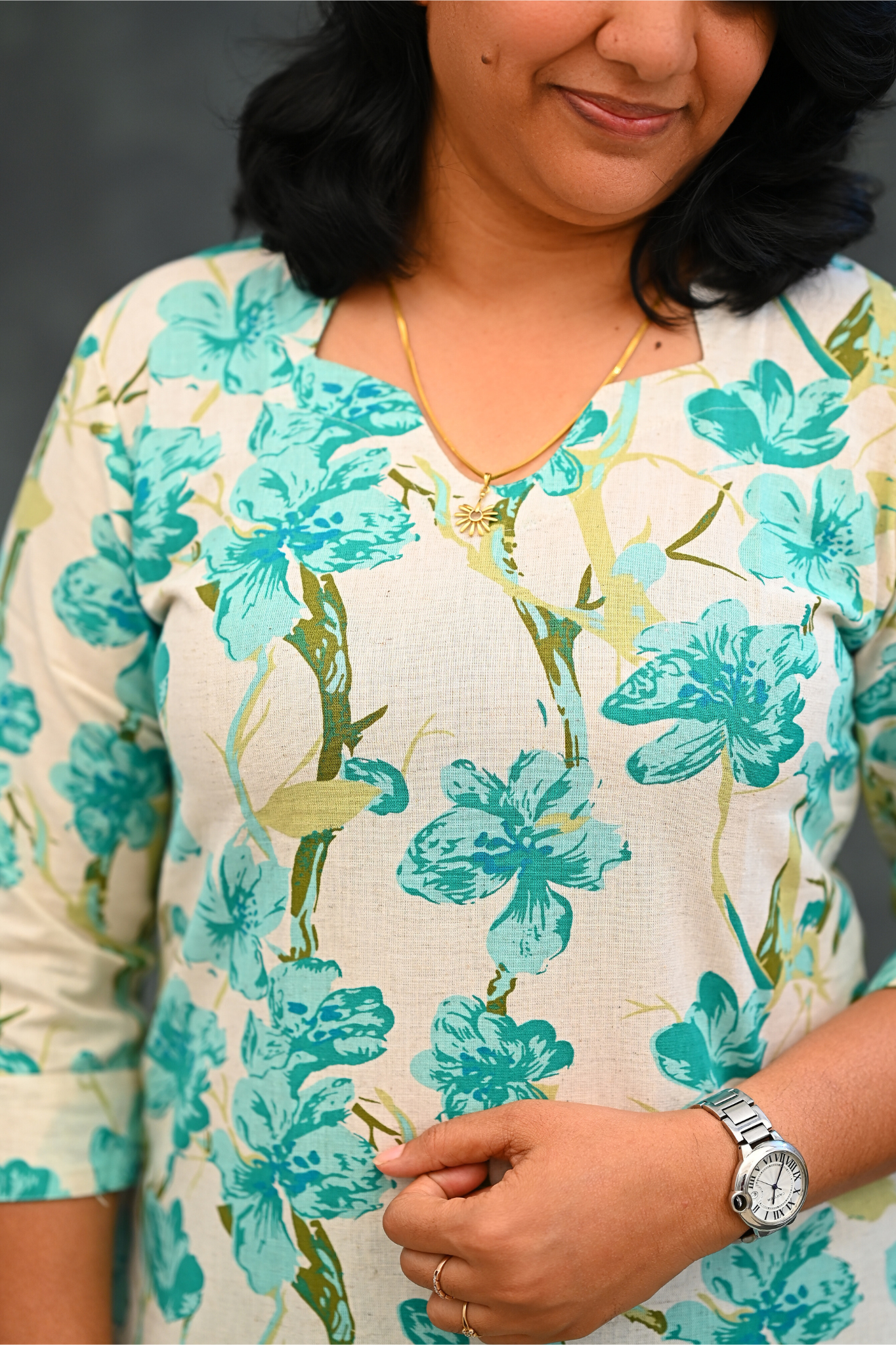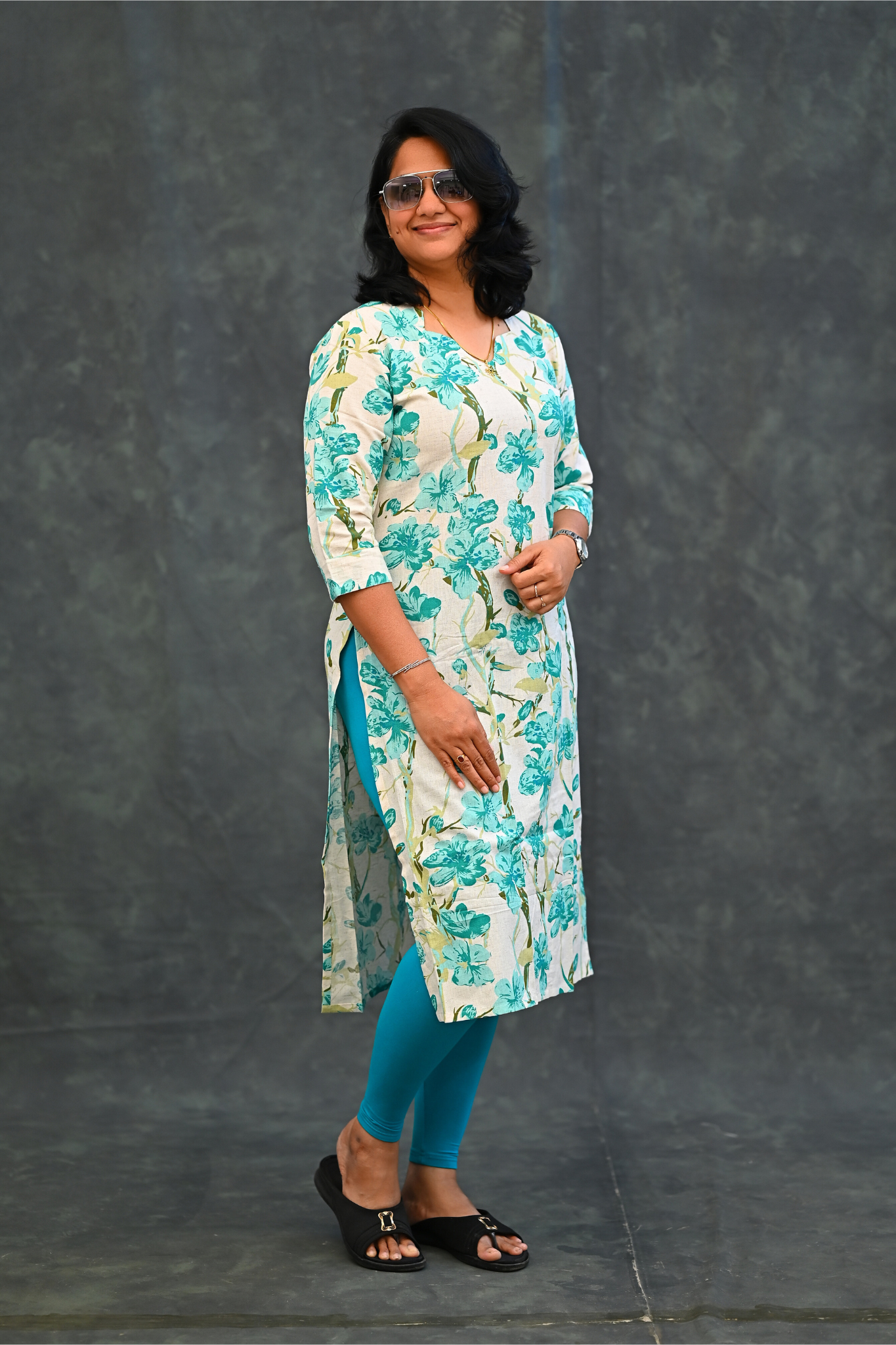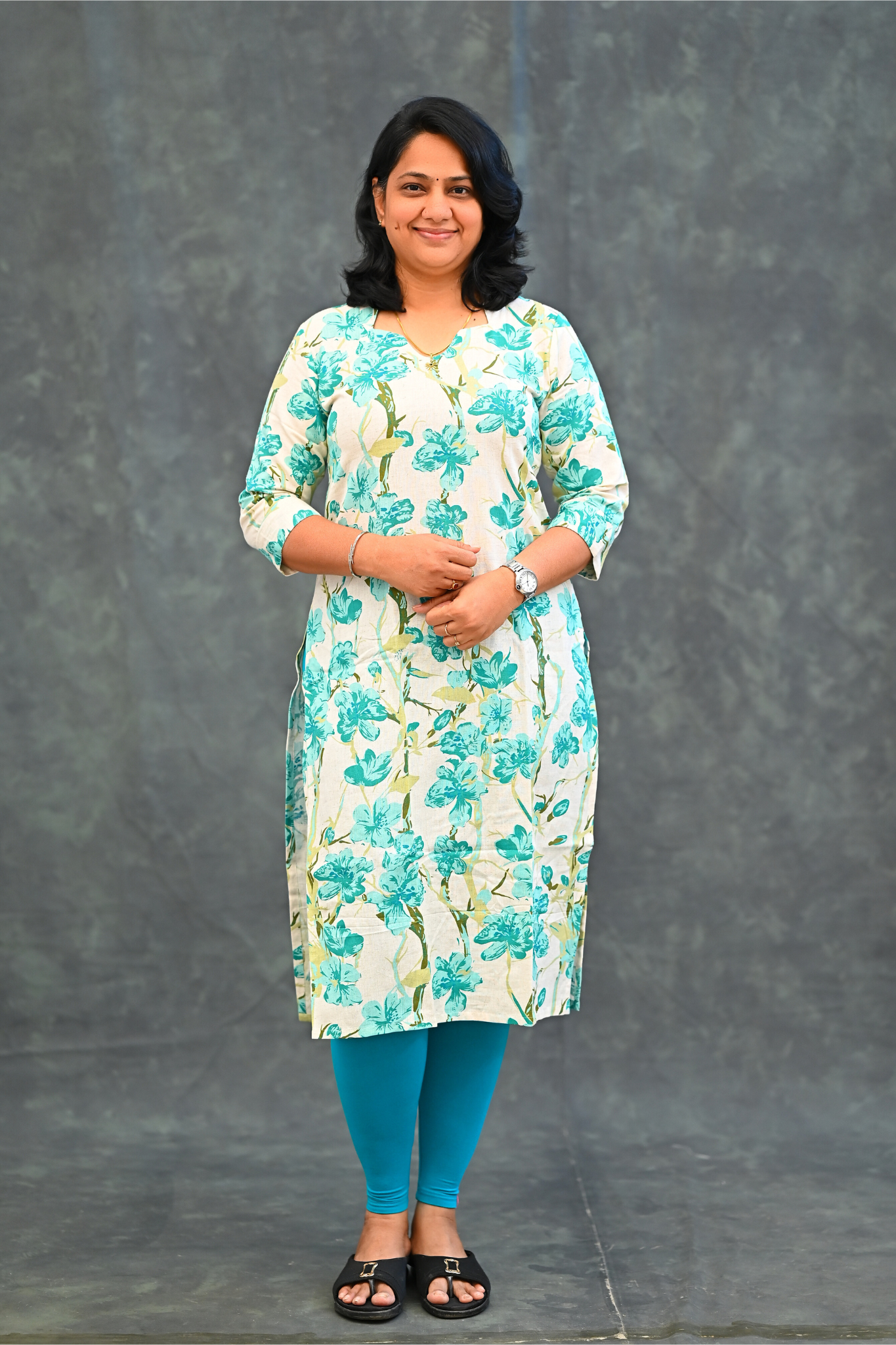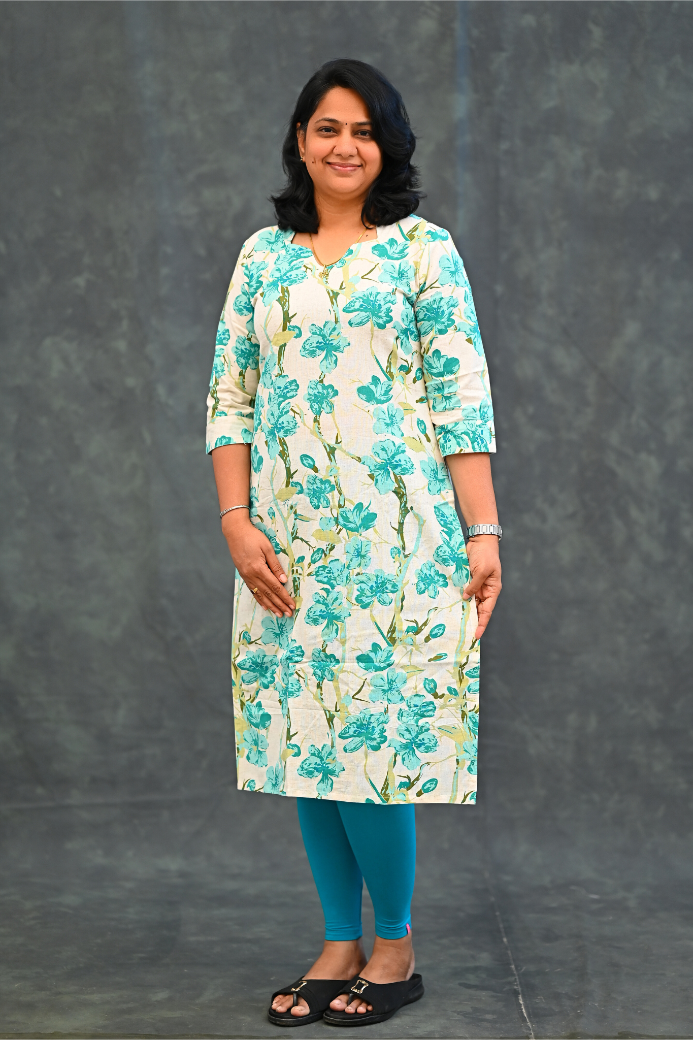 A straight-cut kurti is a refined, professional silhouette that offers a sleek and structured look ideal for office wear. Its minimalist design pairs well with trousers or cigarette pants, projecting elegance and confidence in a business setting.