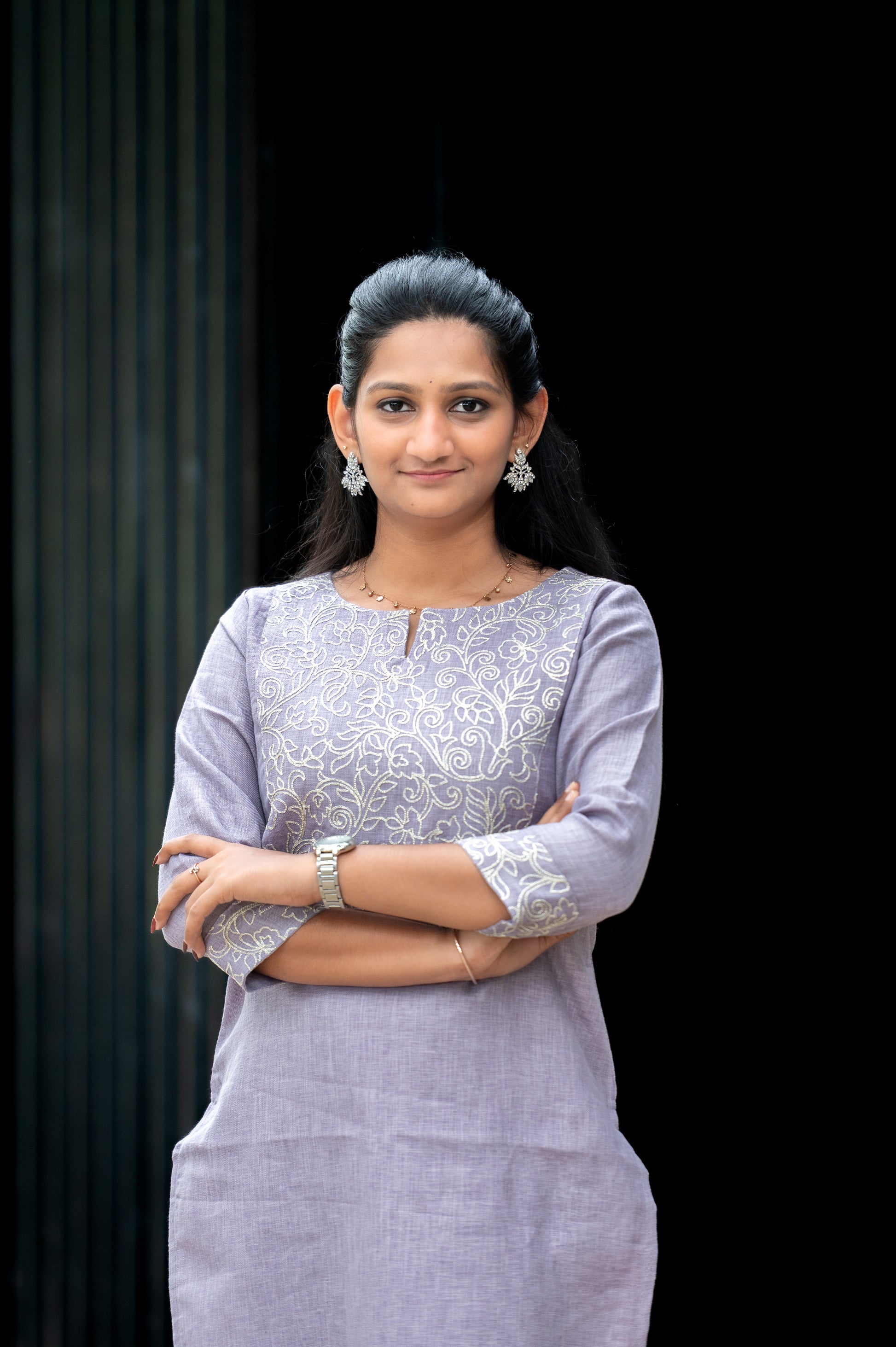 Graceful straight-cut kurti with intricate white thread embroidery on the yoke and sleeve ends. Features a side slit for comfort and a modest round neckline with a touch of sophistication.