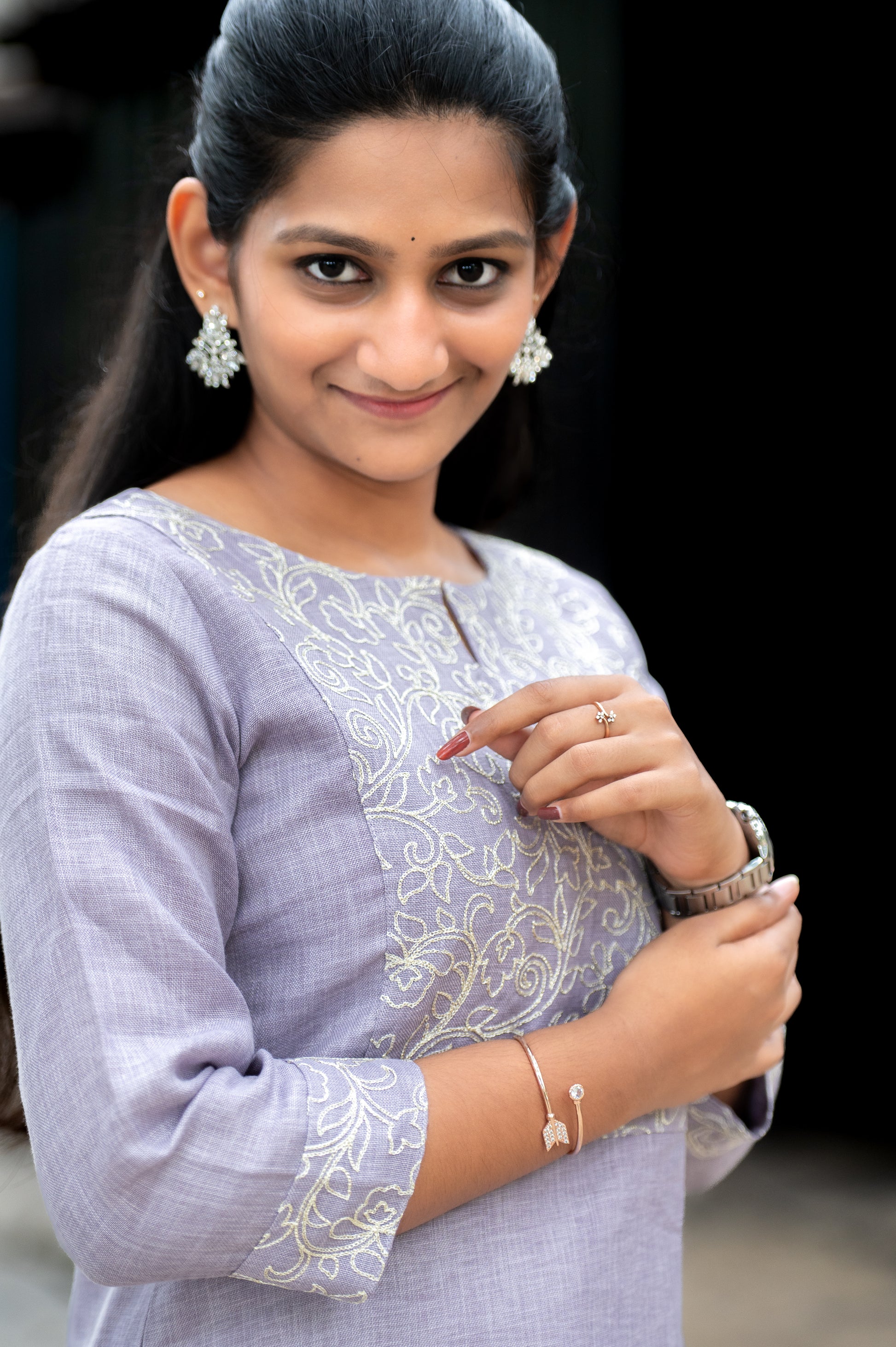 Soothing lavender with delicate white embroidery and subtle undertones of lilac.