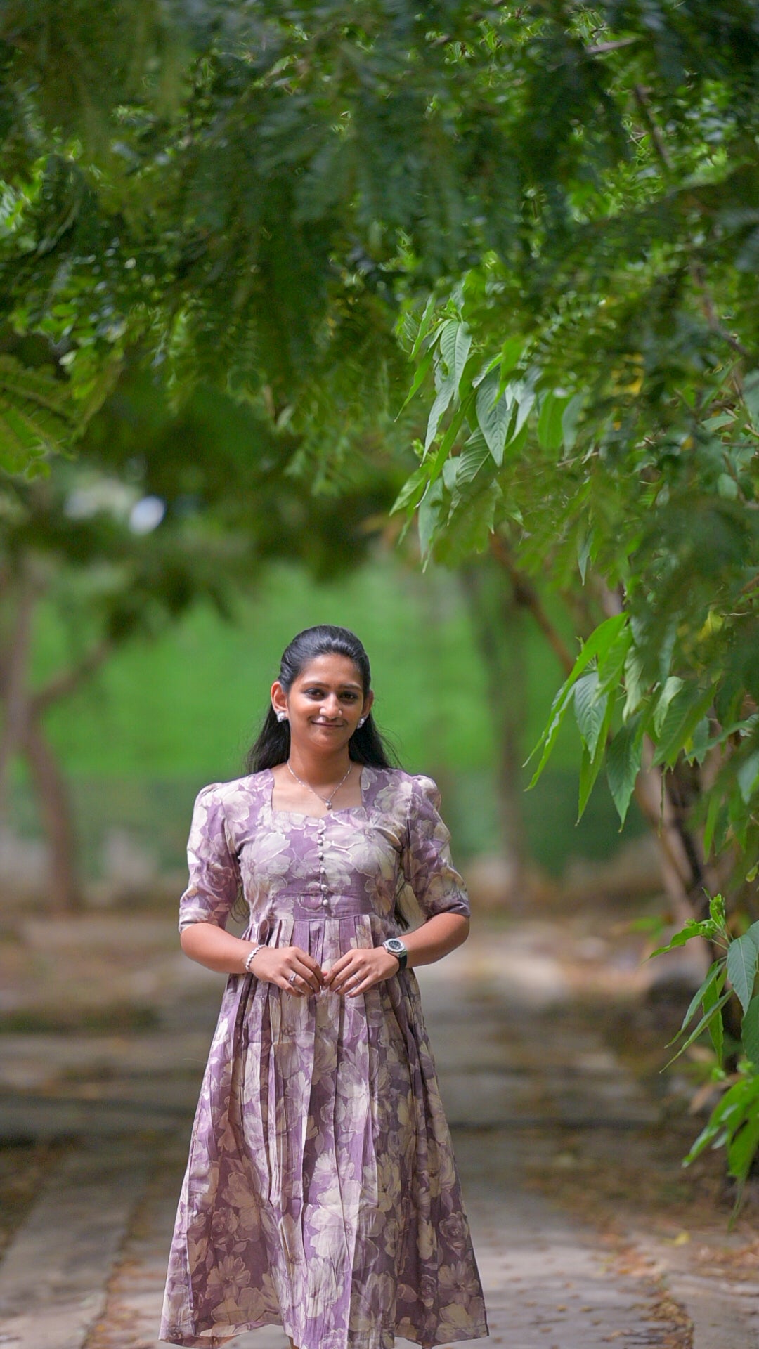 Step into a dream with Lilac Reverie, a flowy kurti in muted lavender tones, blossoming with soft cream floral prints. The square neckline, dainty front buttons, and gentle pleats lend a vintage poetry to the silhouette, perfect for creative souls and quiet explorers. Whether behind the lens or lost in thought, this kurti wraps you in calm elegance and soft expression.