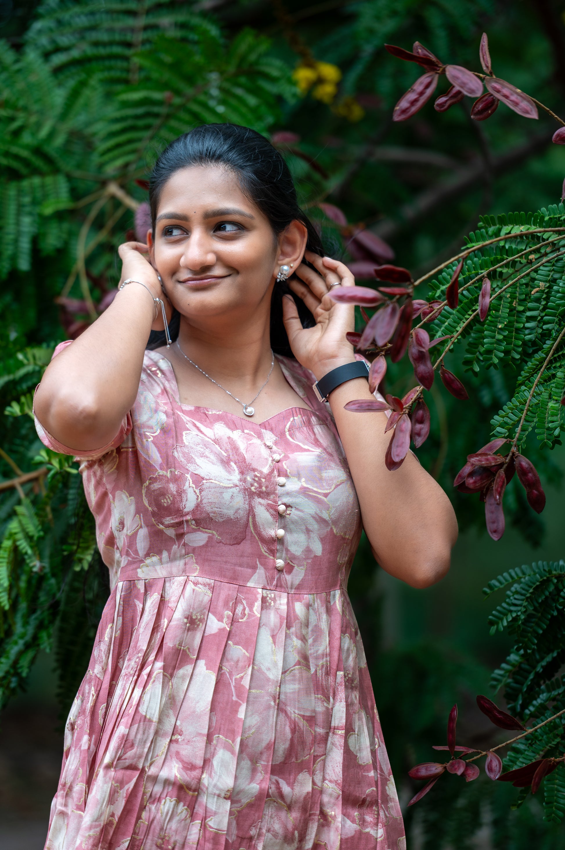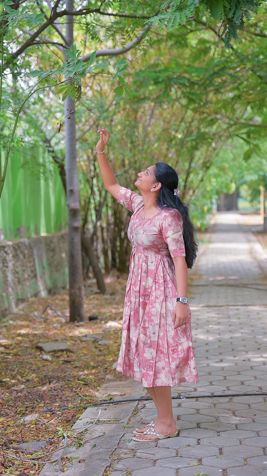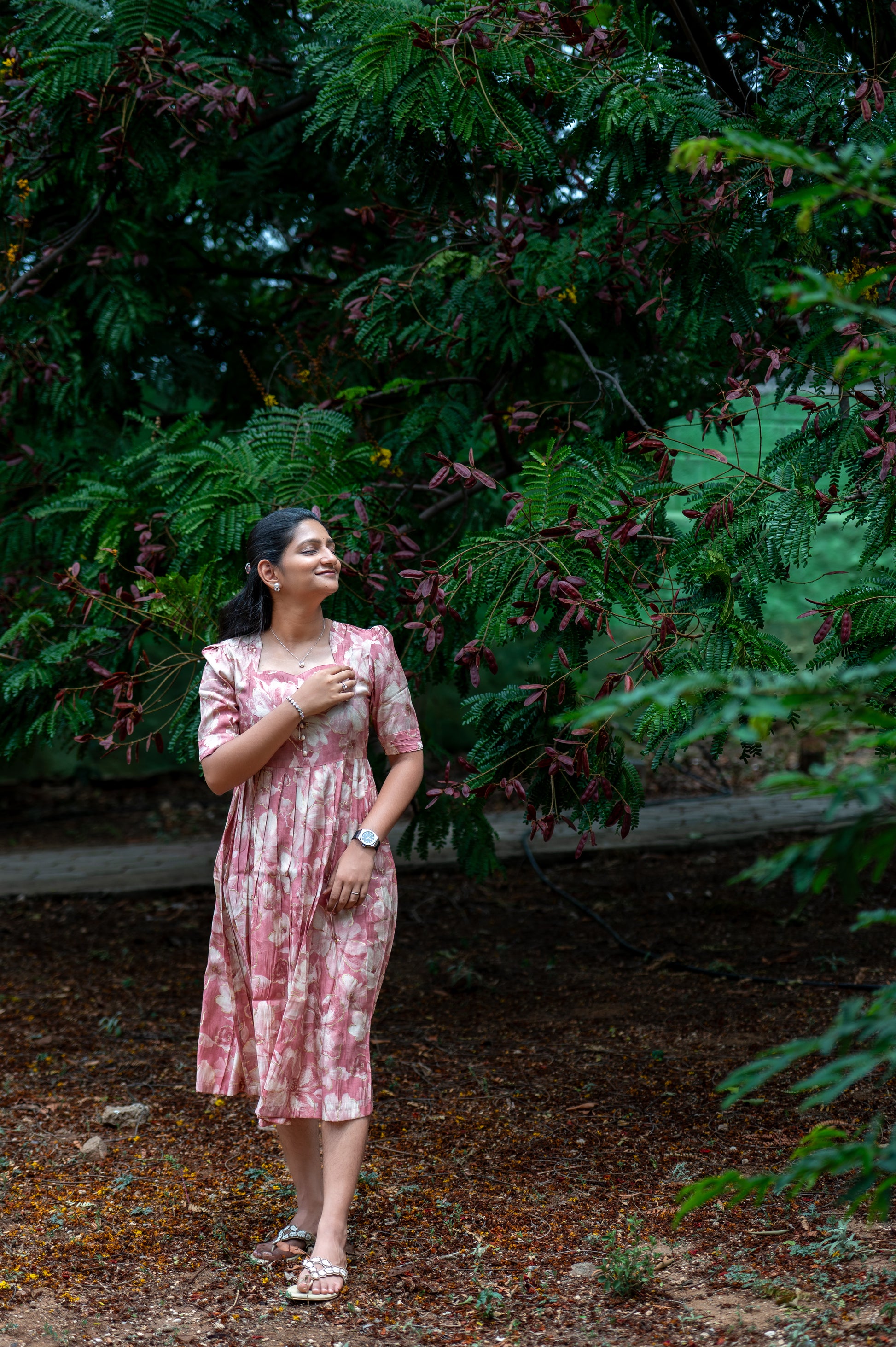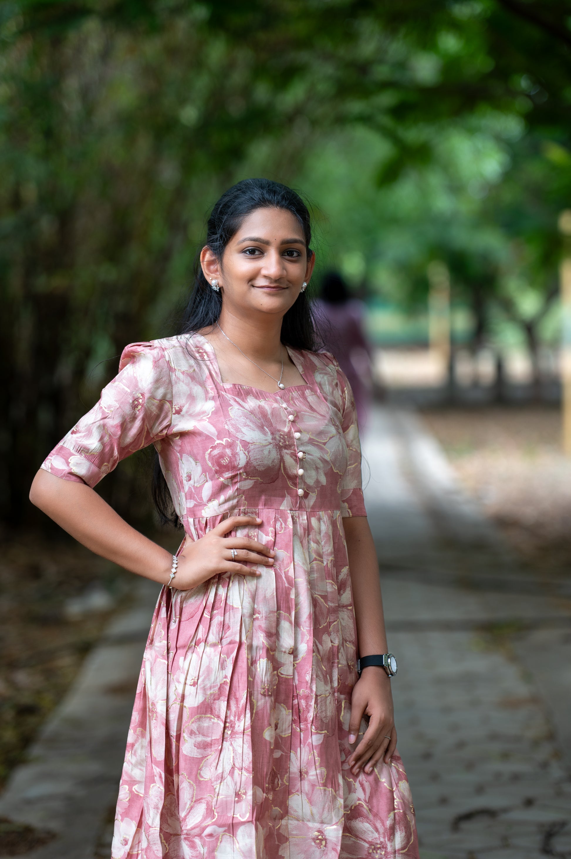 Grace meets vintage charm in the Dusky Rosewood kurti, adorned with delicate ivory floral patterns blooming over a soft, dusty rose base and gathered pleats below the bust add a romantic, old-world elegance. Ideal for intimate occasions or serene evening strolls, this kurti exudes timeless beauty with a gentle, feminine grace.