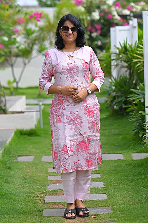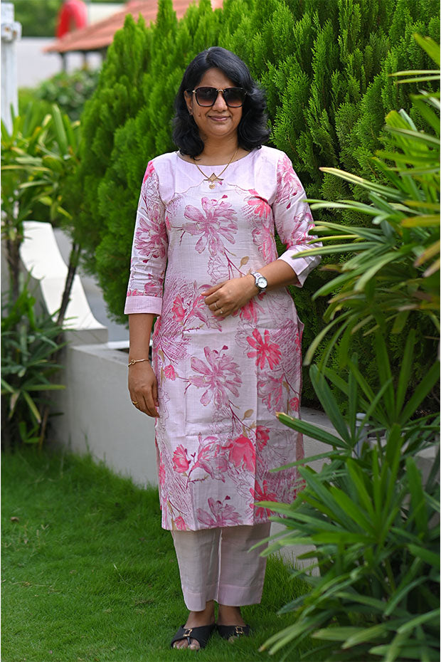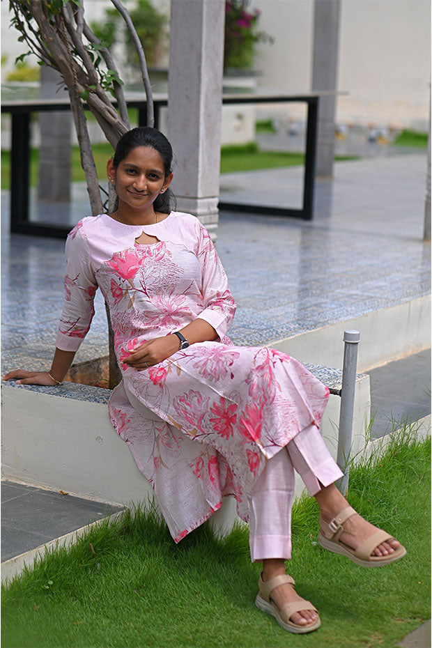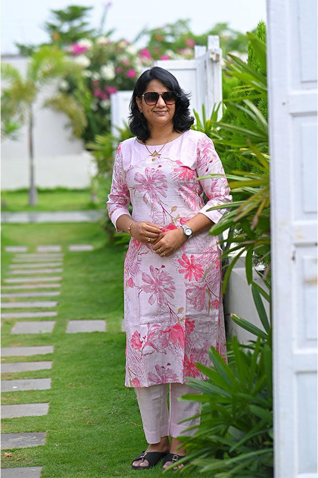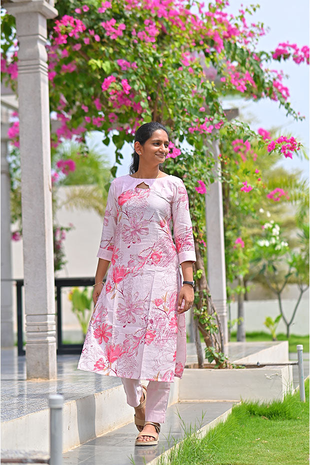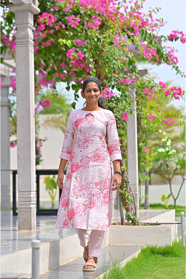 Radiating soft allure, the ‘Pink Aura’ kurti glows with pastel perfection and feminine lightness.