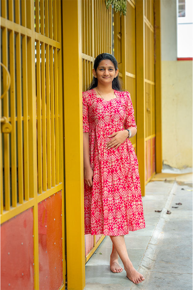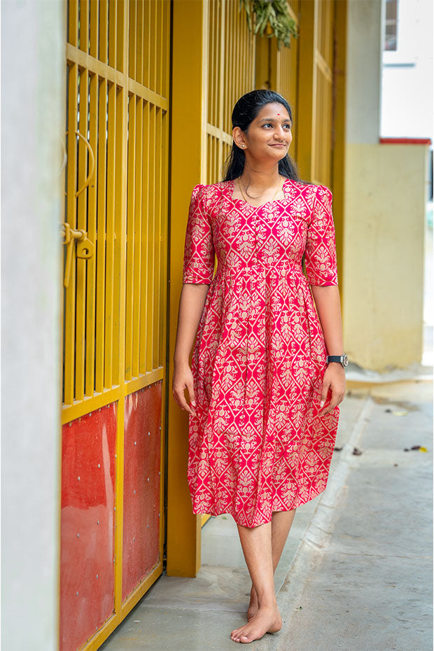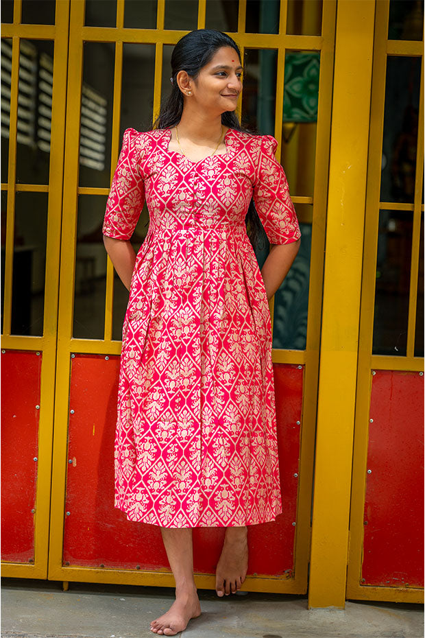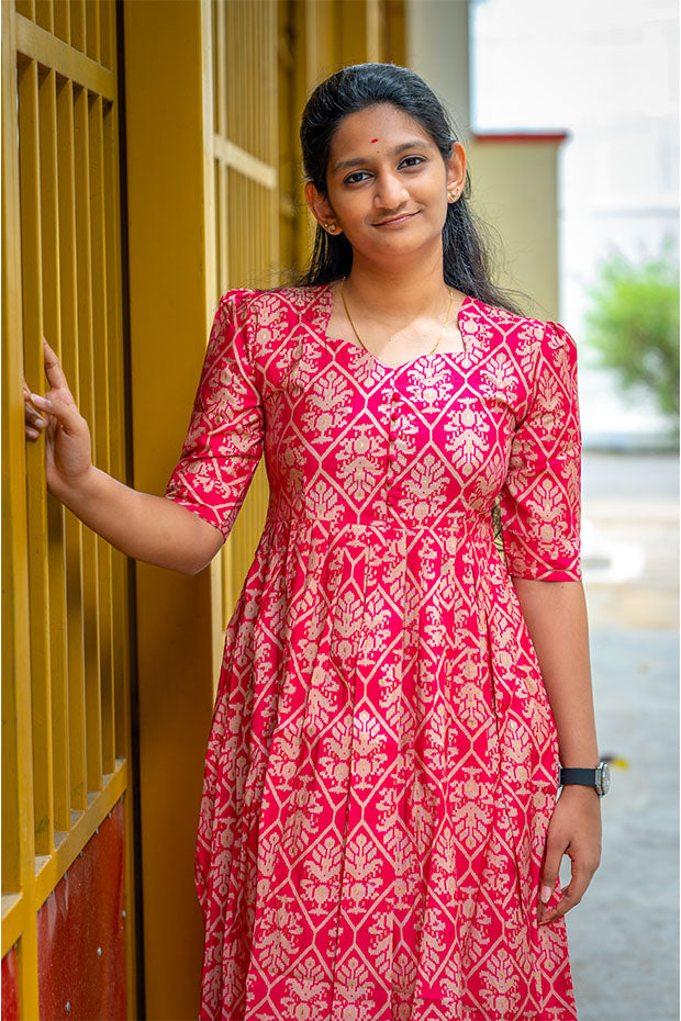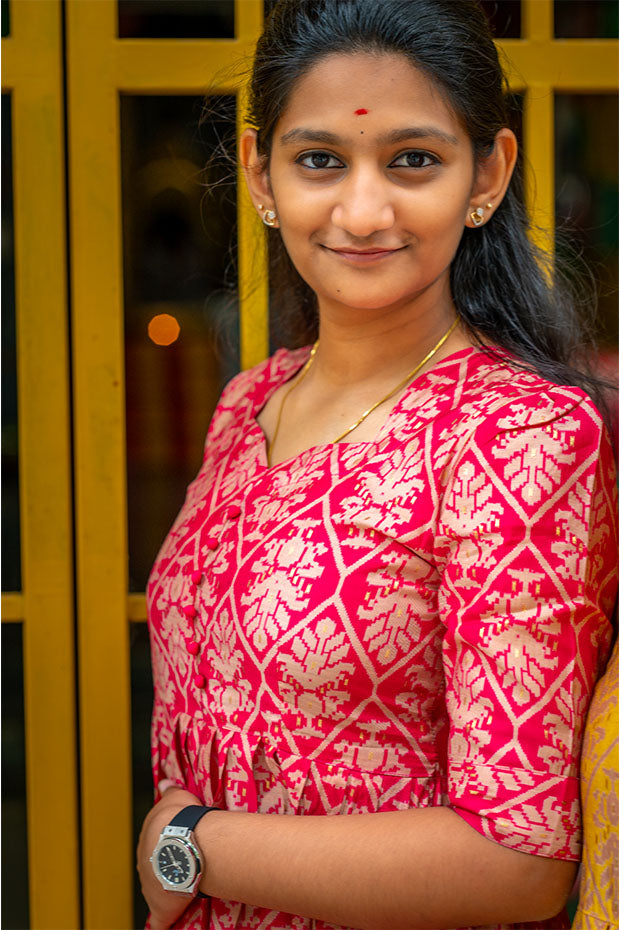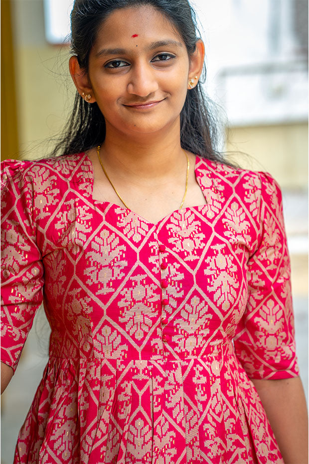Regal and resonant, the ‘Rani Echo’ kurti celebrates heritage with bold magenta hues and graceful detailing.