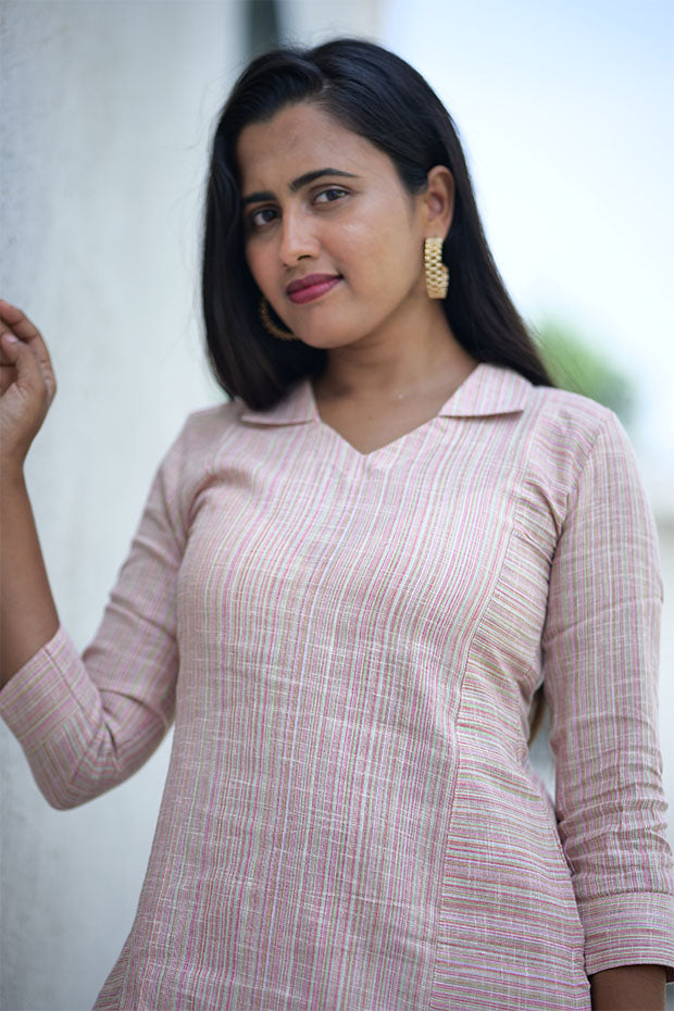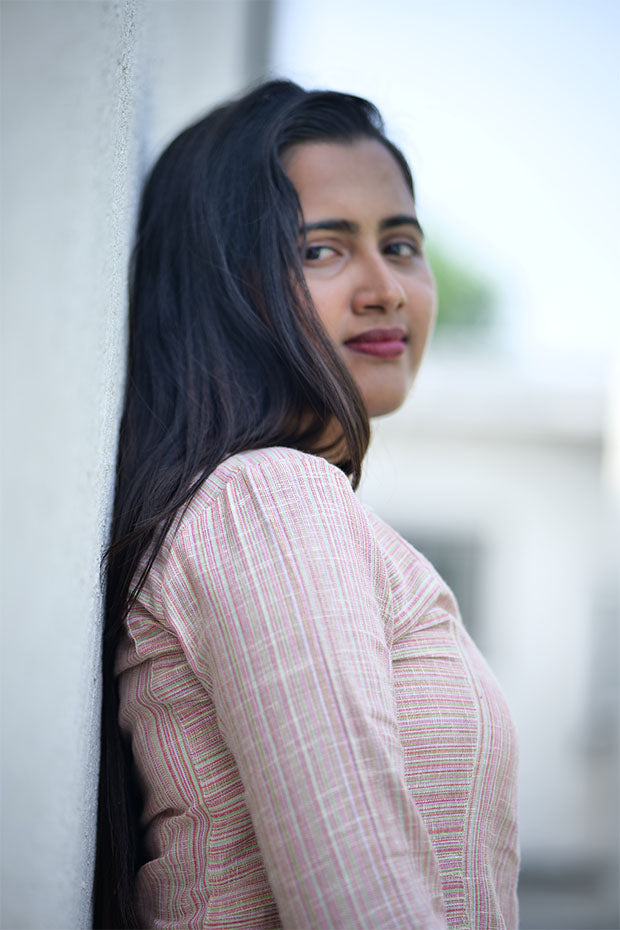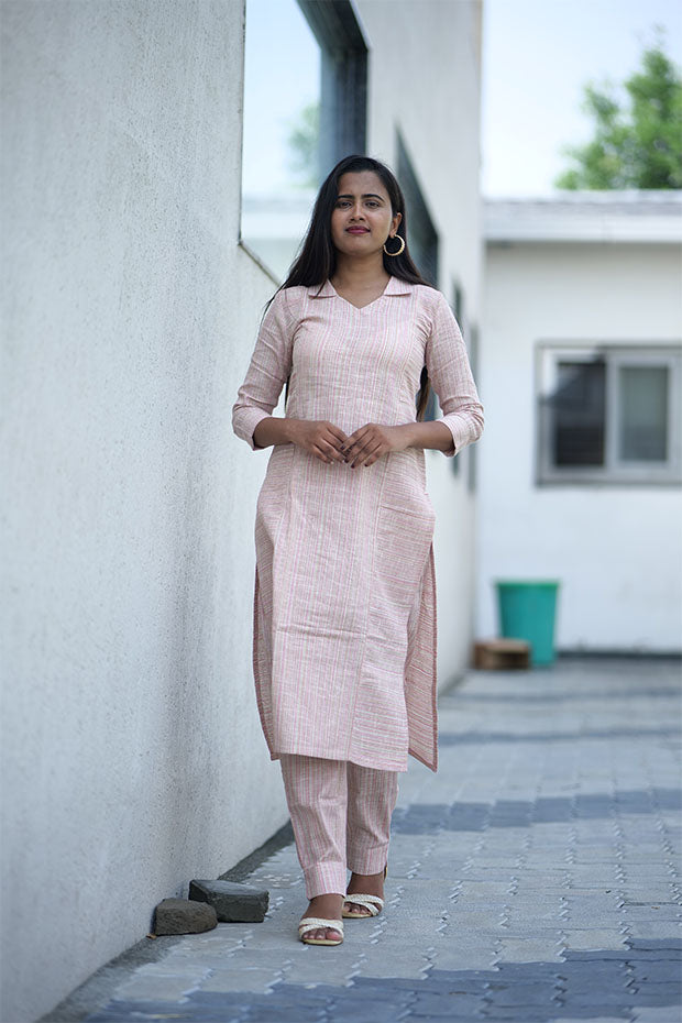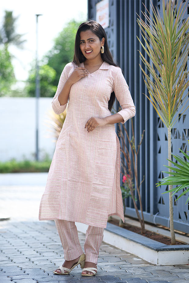 Romantic and luxurious, the ‘Velvet Rose Mist’ kurti blends plush textures with dusty rose elegance.