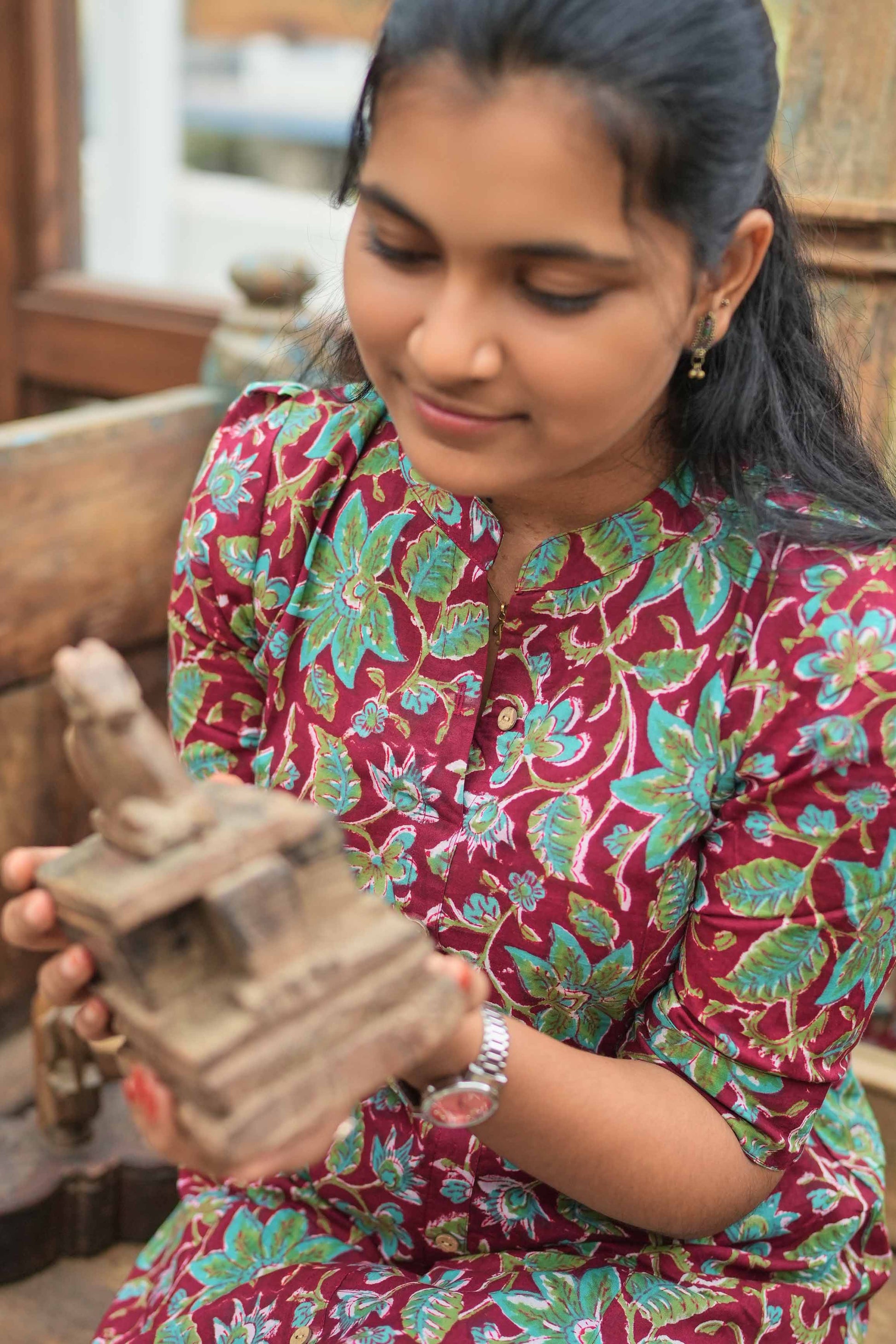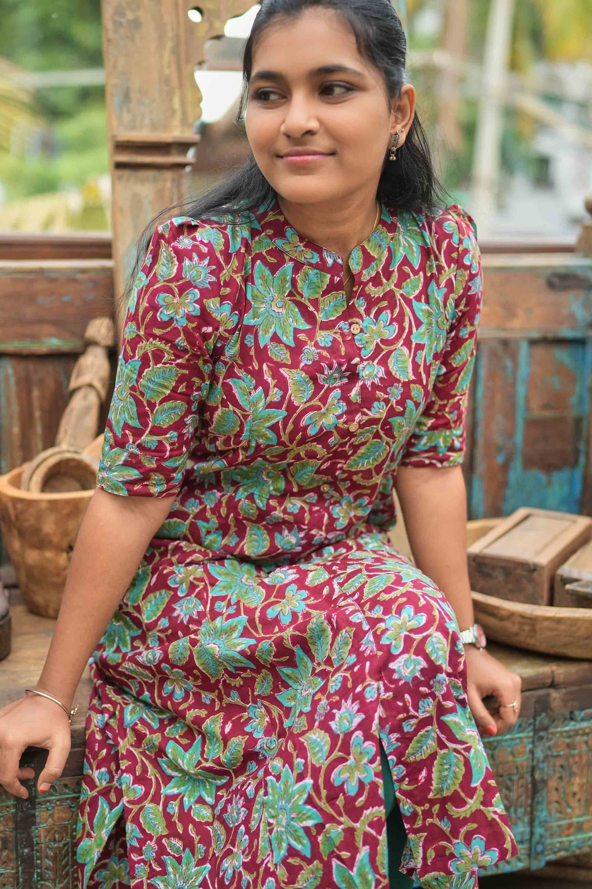 A beautiful A-line kurti adorned with bold floral vine prints, combining tradition and everyday elegance. Perfect for casual, festive, or semi-formal occasions.