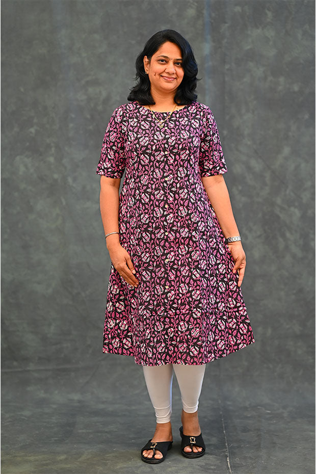 Deep, rich, and romantic — the ‘Wine Garden’ kurti blends moody tones with blooming elegance for a regal finish.