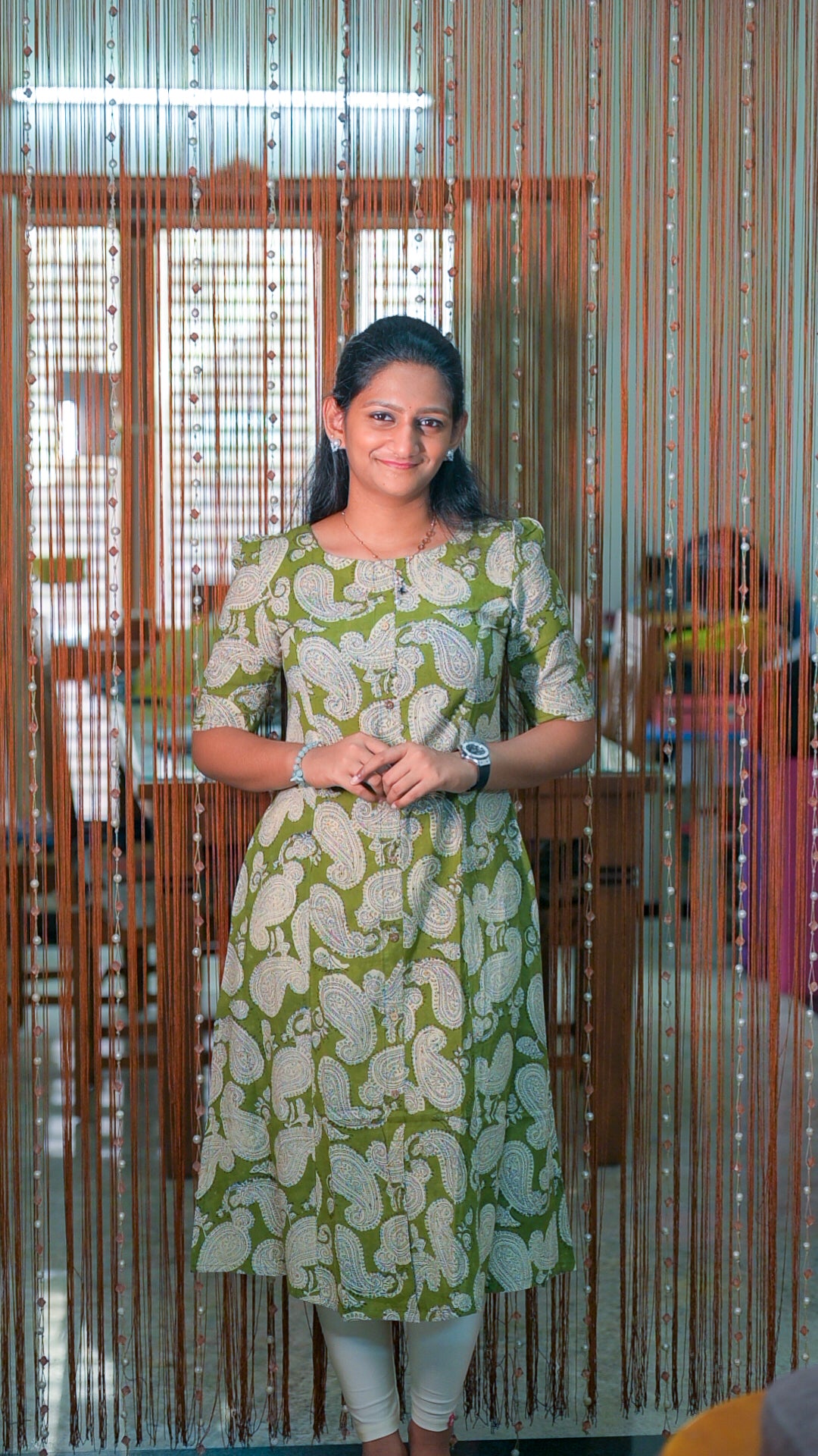 Step into timeless elegance with the Olive Paisley Charm kurti. Crafted in a soothing olive green hue, this kurti features an all-over classic paisley print in soft ivory, adding a touch of ethnic grace to its contemporary silhouette.